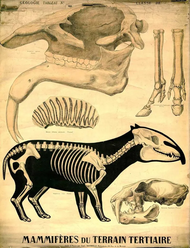 This poster is of a skeleton of a palaeotherium minus, an extinct horse like European herbivore.