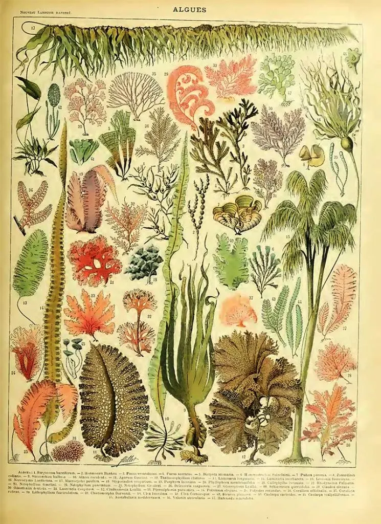 A gorgeous print of seaweed and algae. For more algae prints, check out Ernst Haeckel’s.