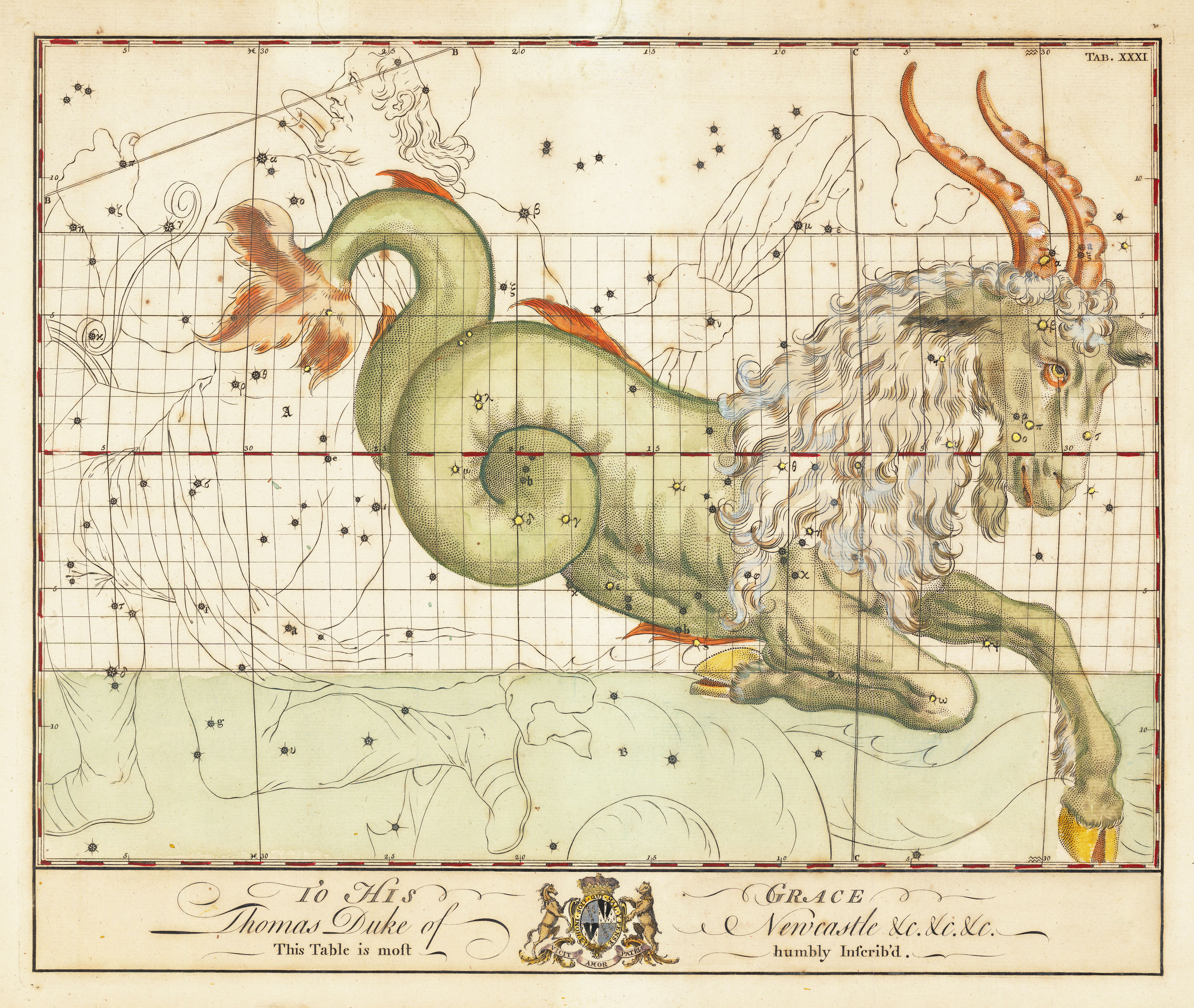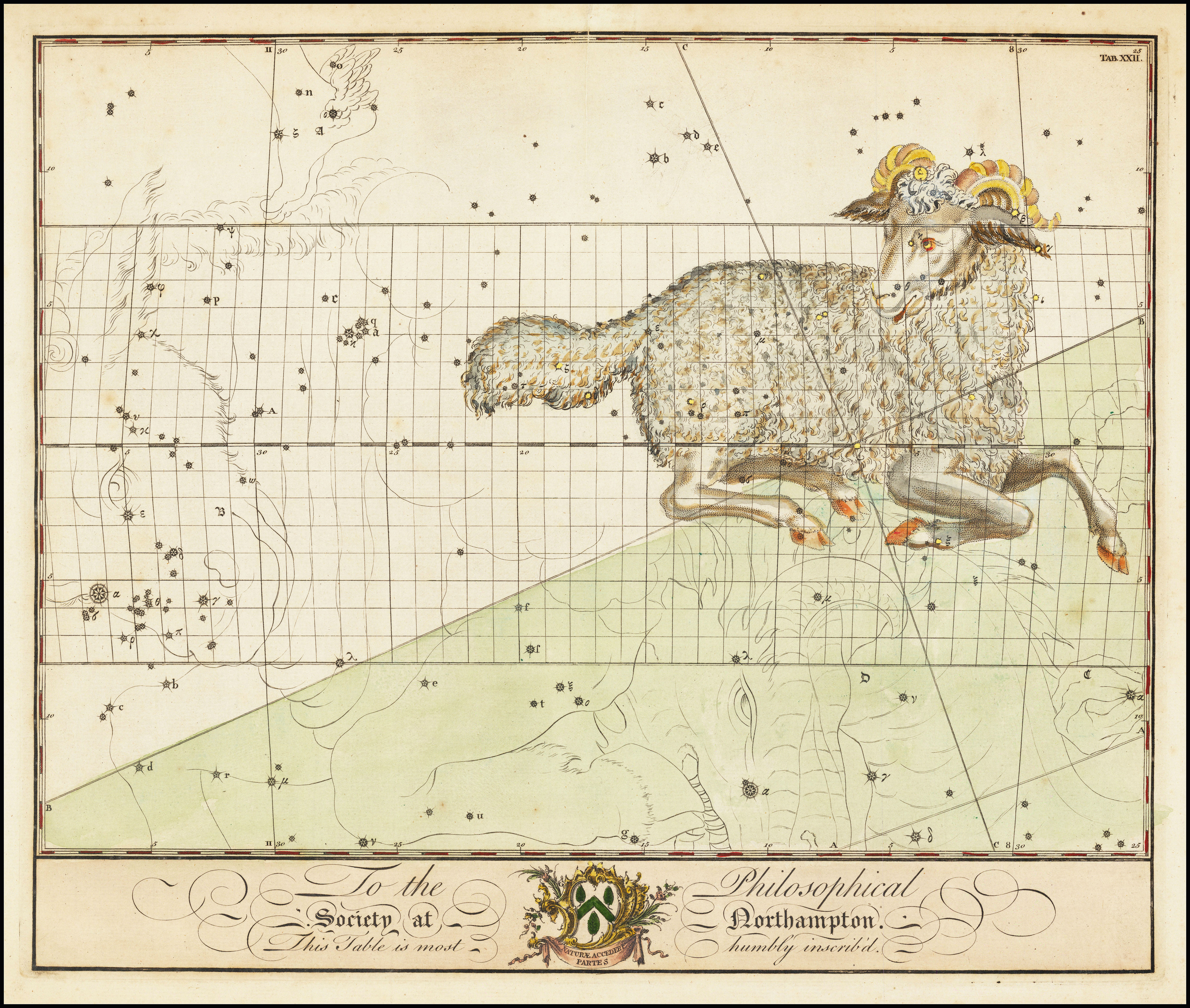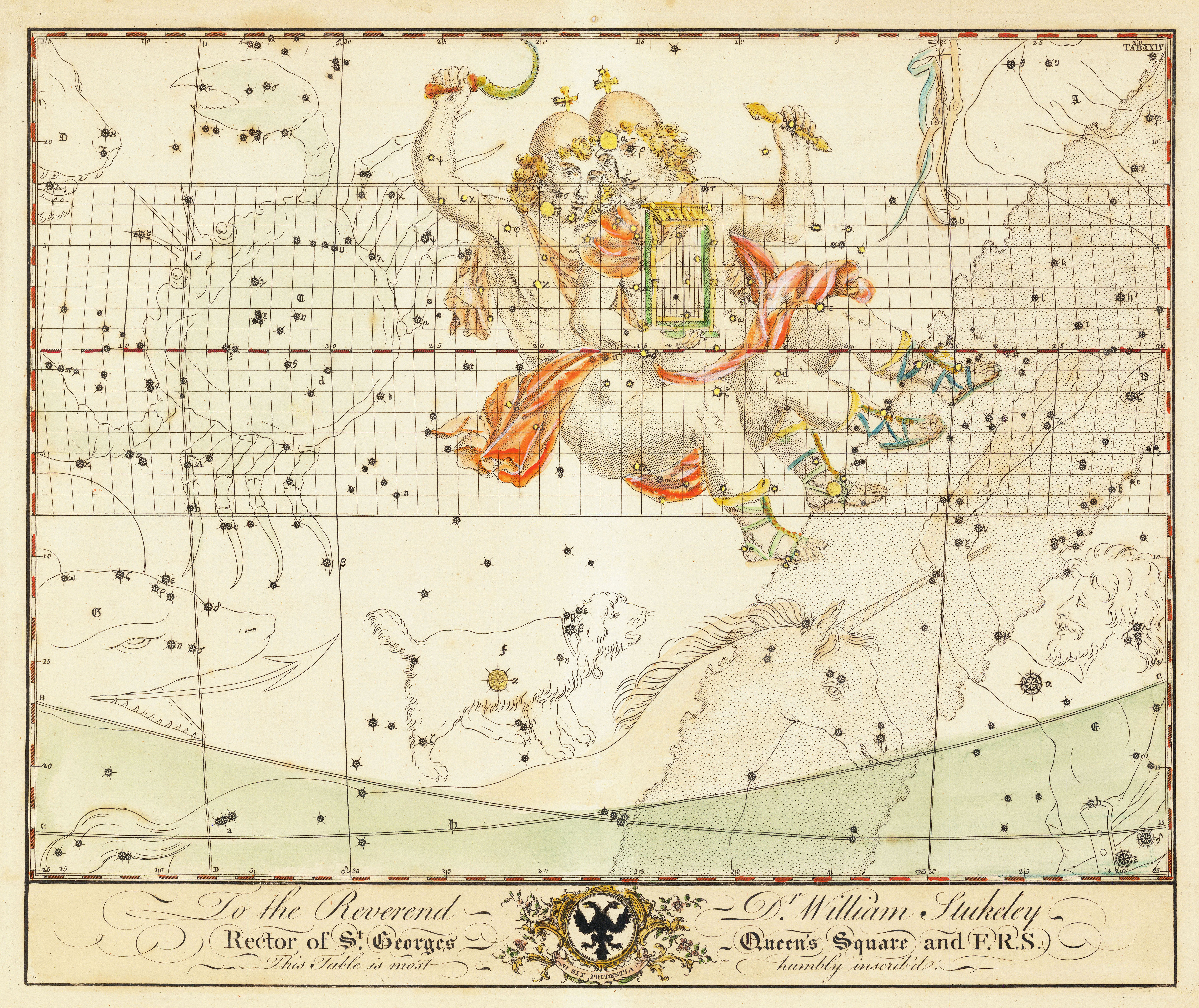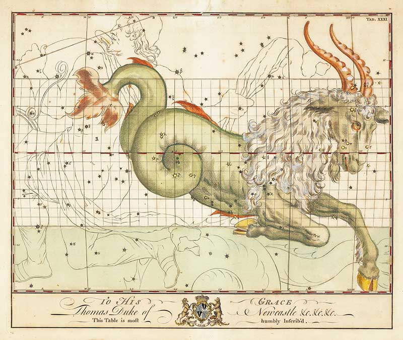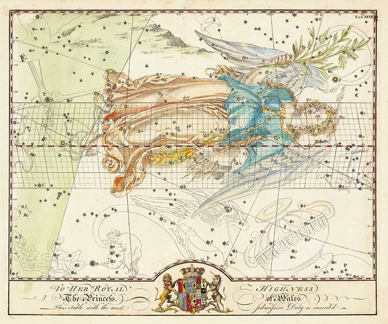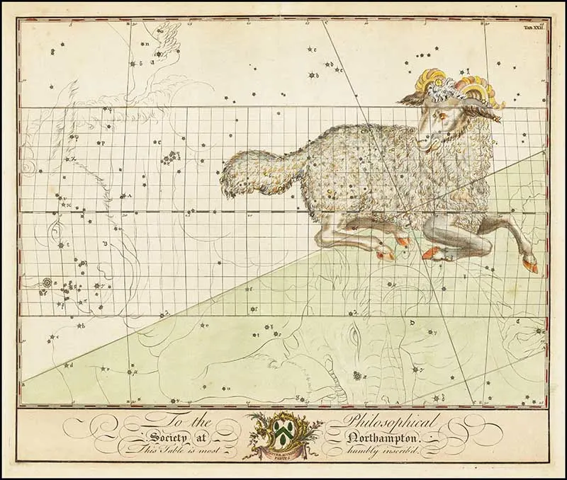John Bevis’s star charts predate the Sidney Hall zodiac signs by over 30 years. The Zodiac Star Charts are from his book Uranographia Britannica.