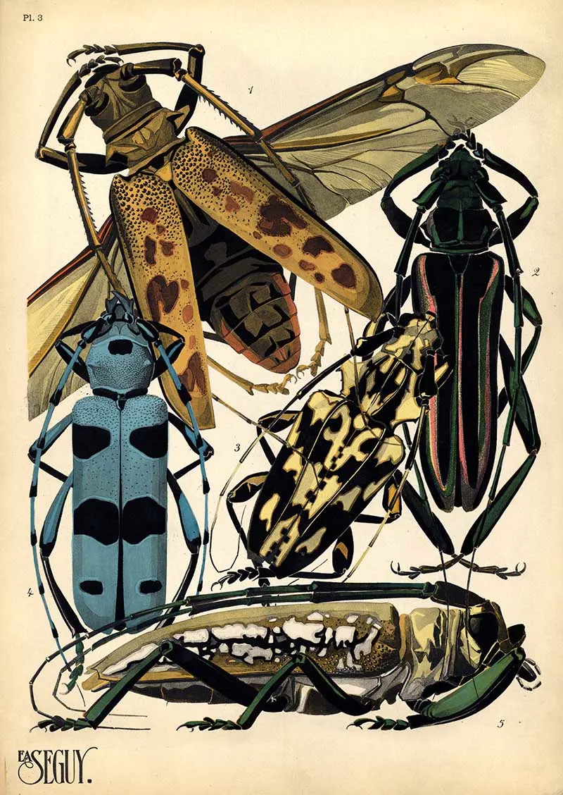 With his scientific understanding and artistic skill, Seguy skillfully translated insects’ intricate patterns and textures onto paper, resulting in stunning visual representations that celebrated the beauty of these often-overlooked creatures.