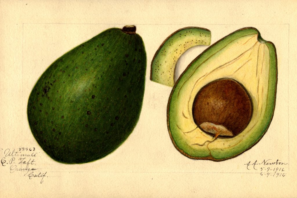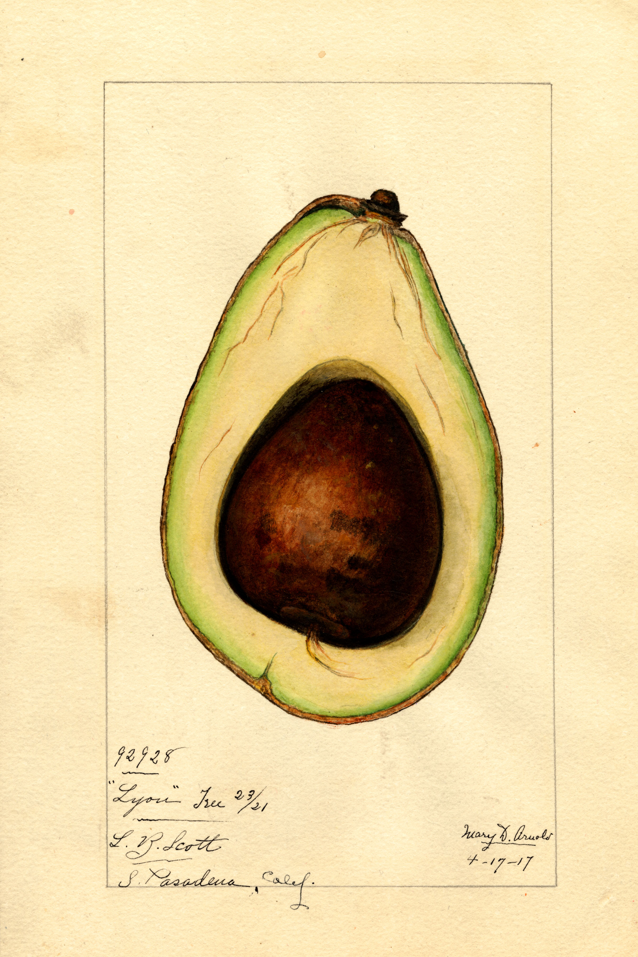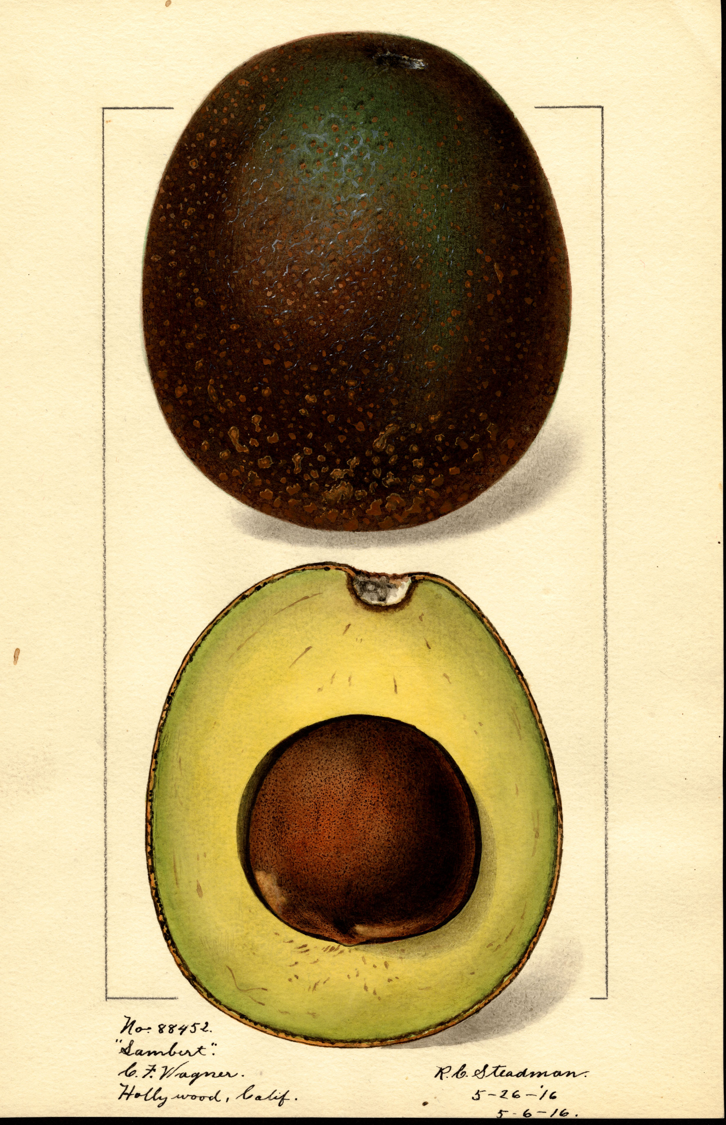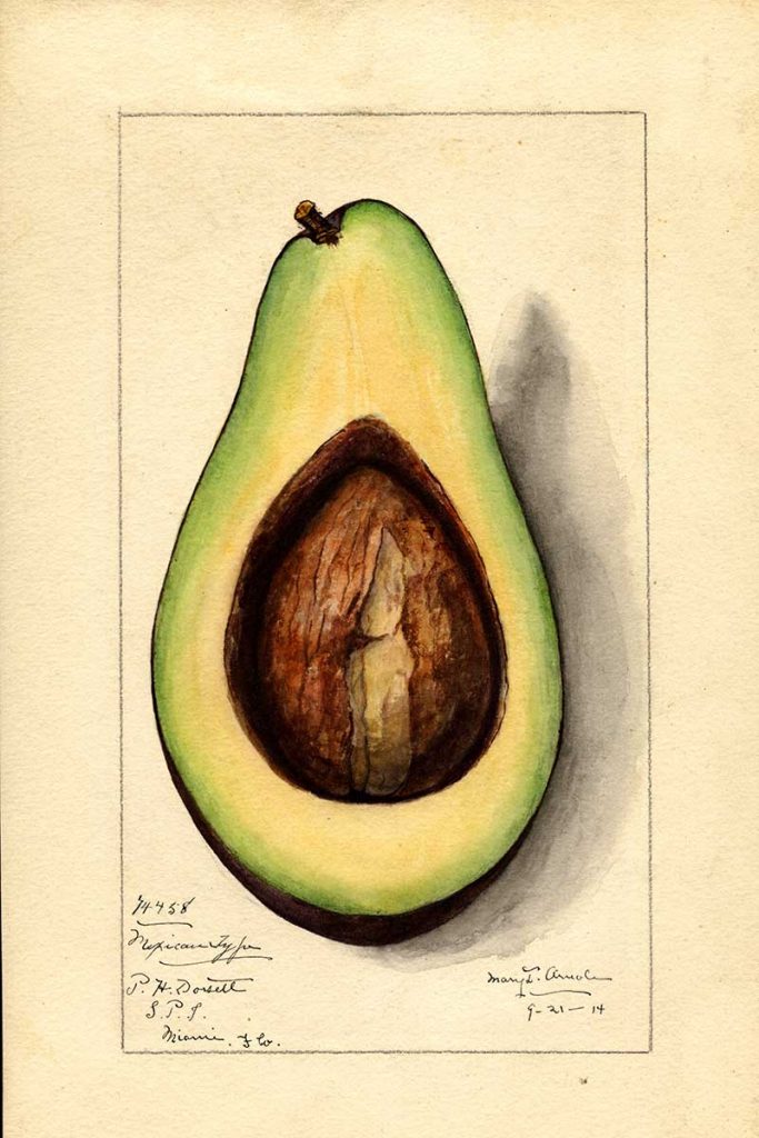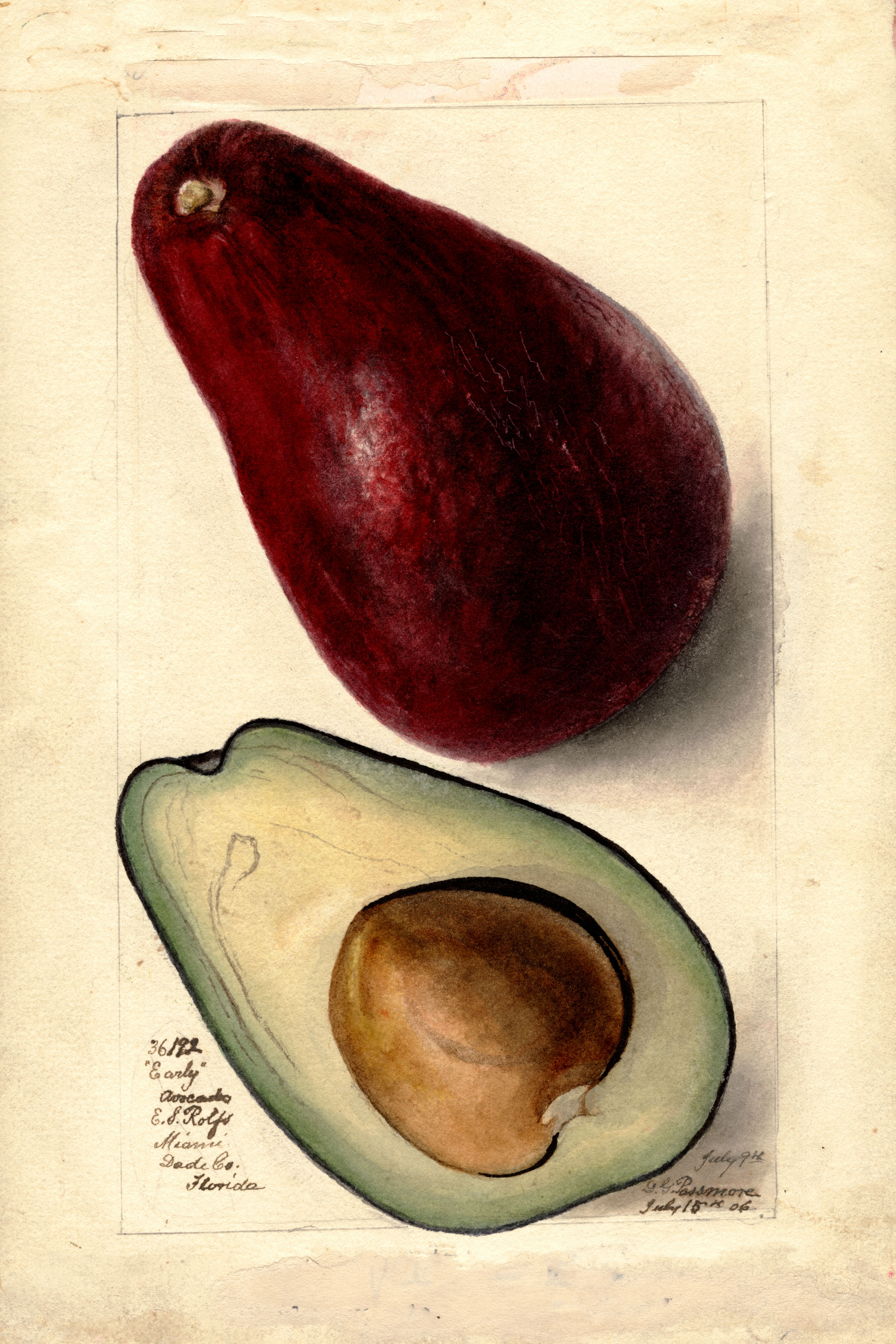 An amazing collection of avocado drawings and watercolor paintings from the US Department of Agriculture Pomological watercolor collection.