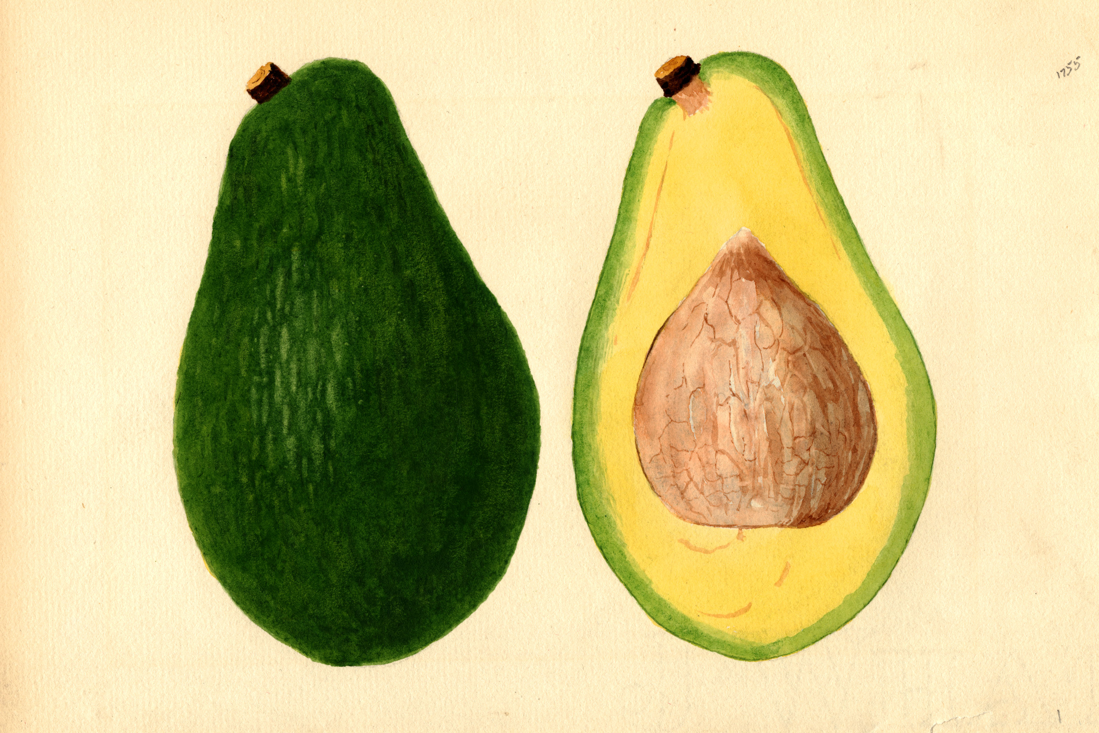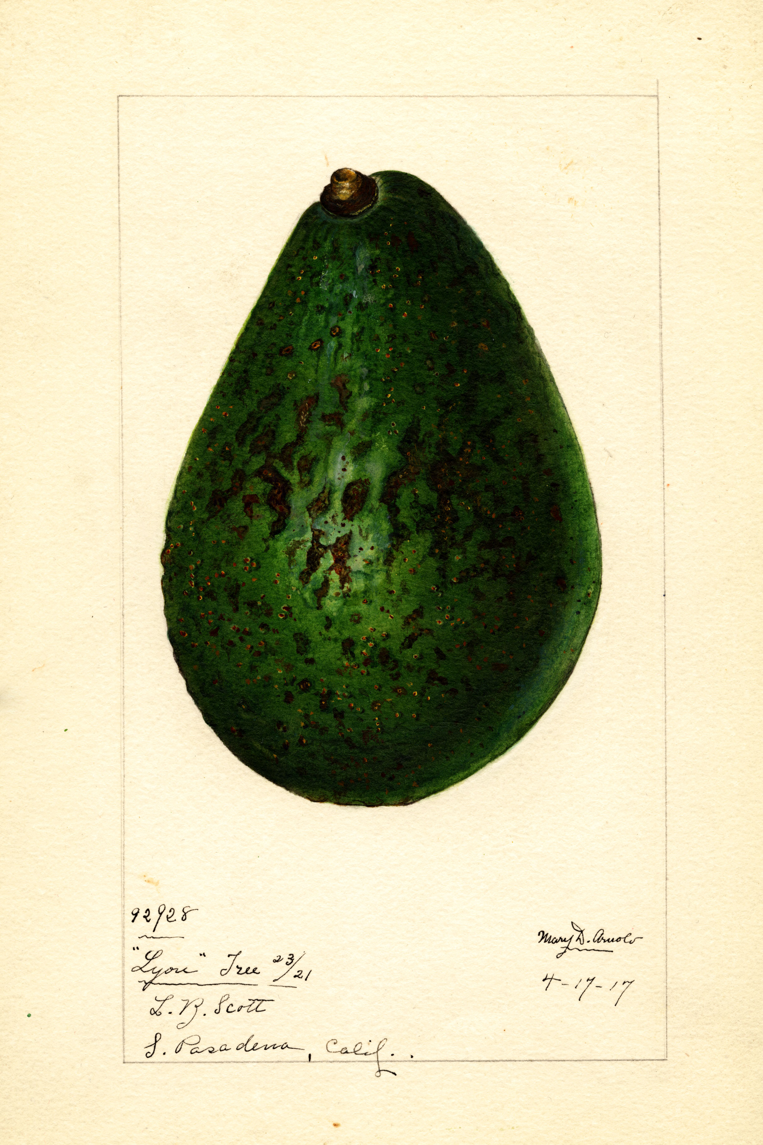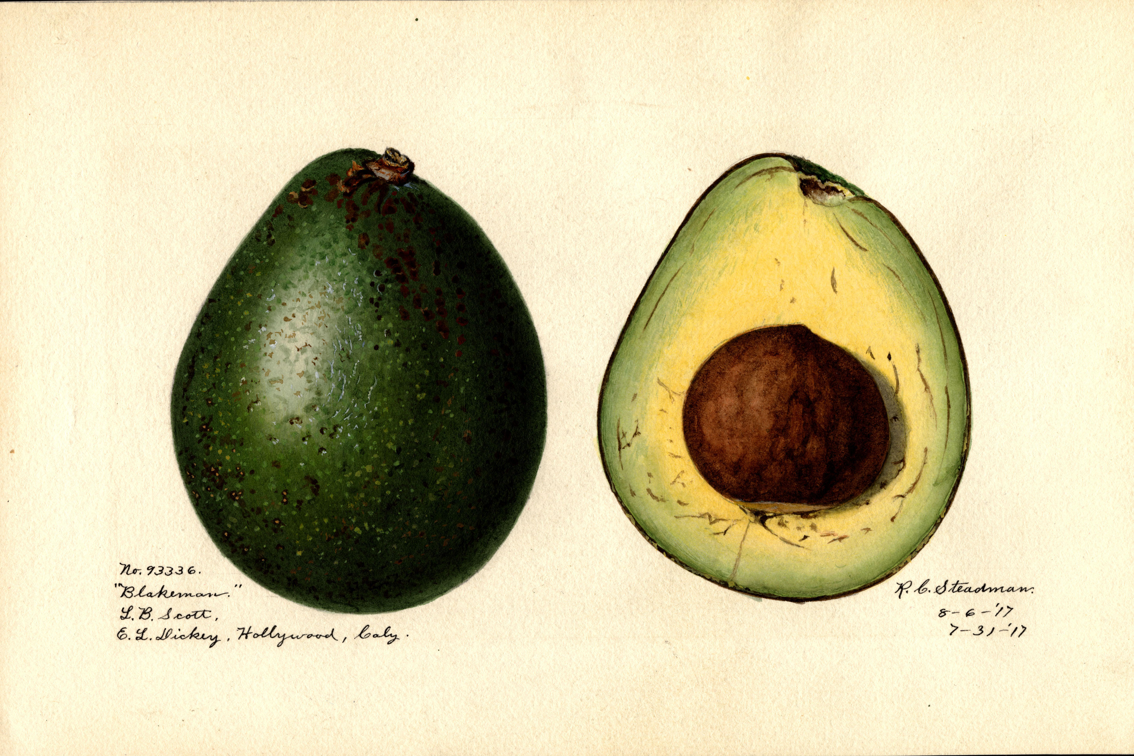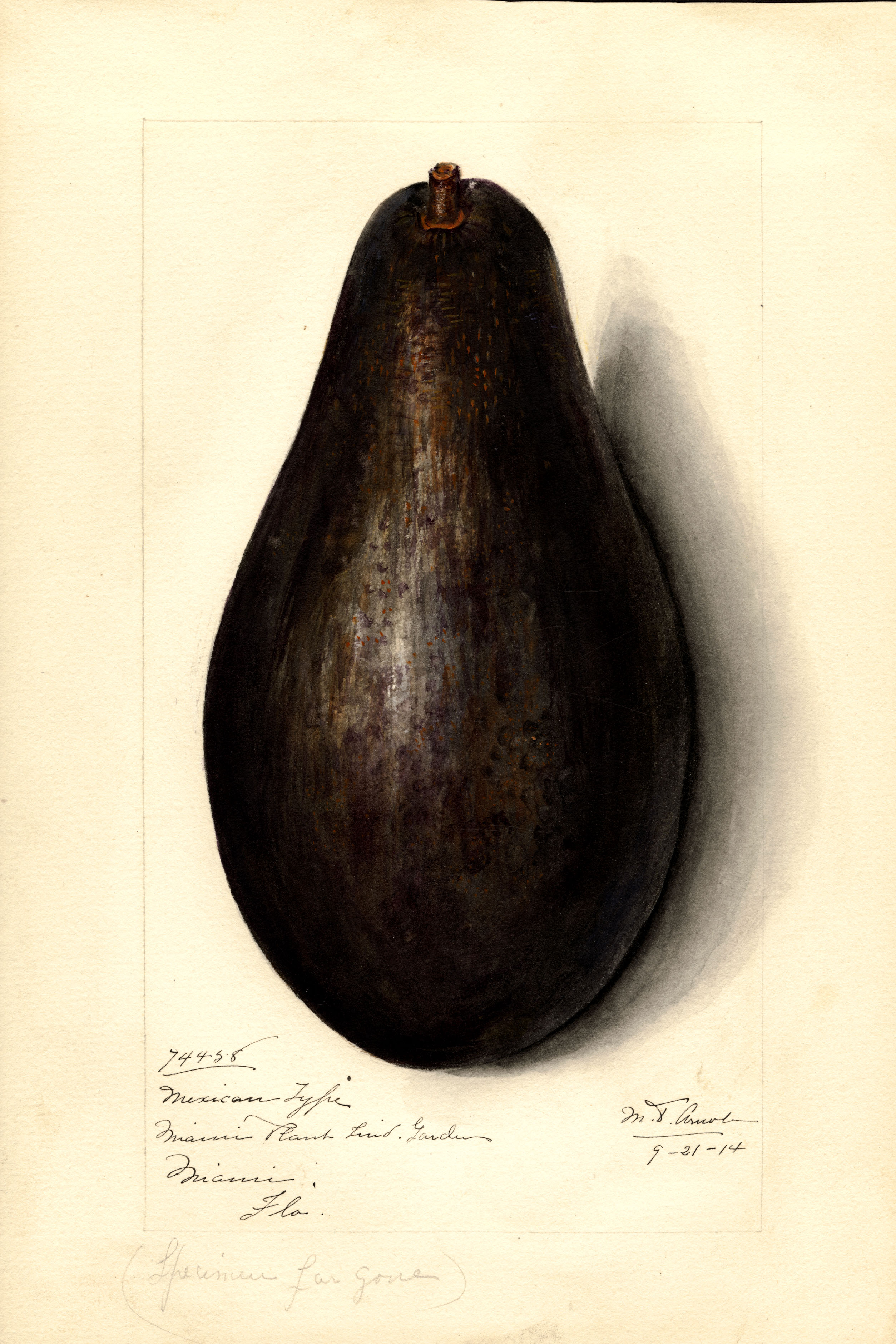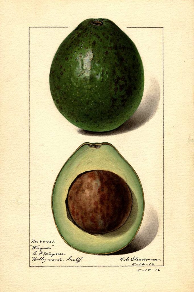 An amazing collection of avocado drawings and watercolor paintings from the US Department of Agriculture Pomological watercolor collection.