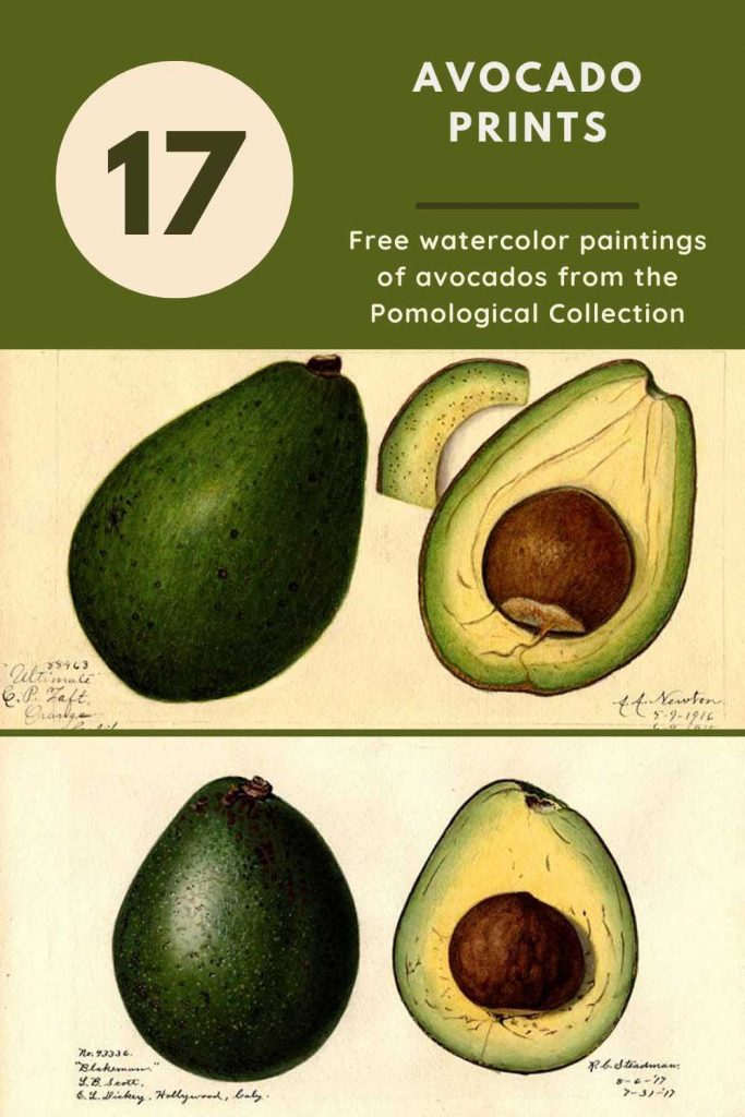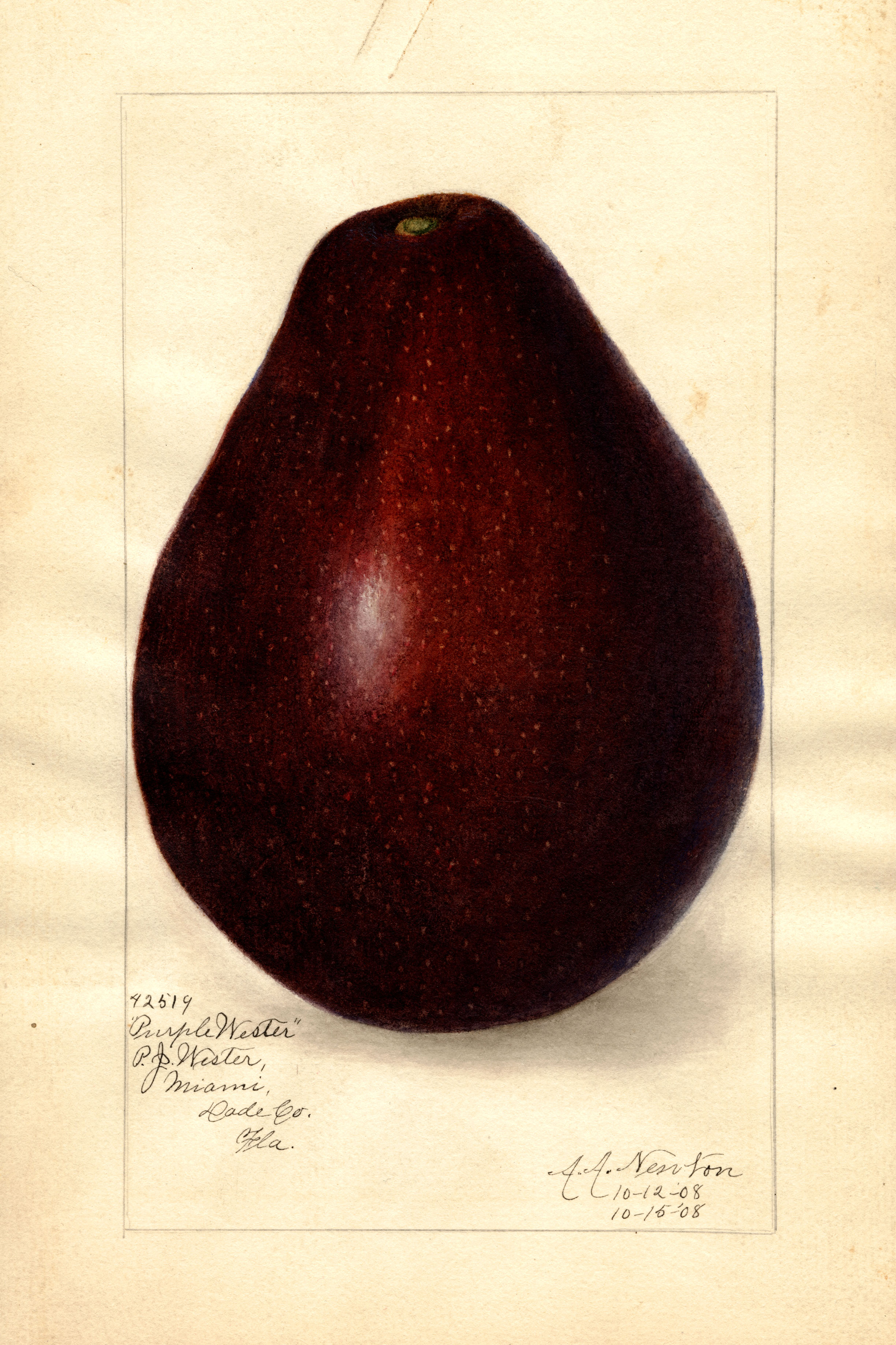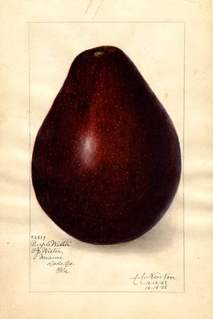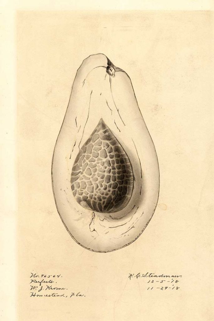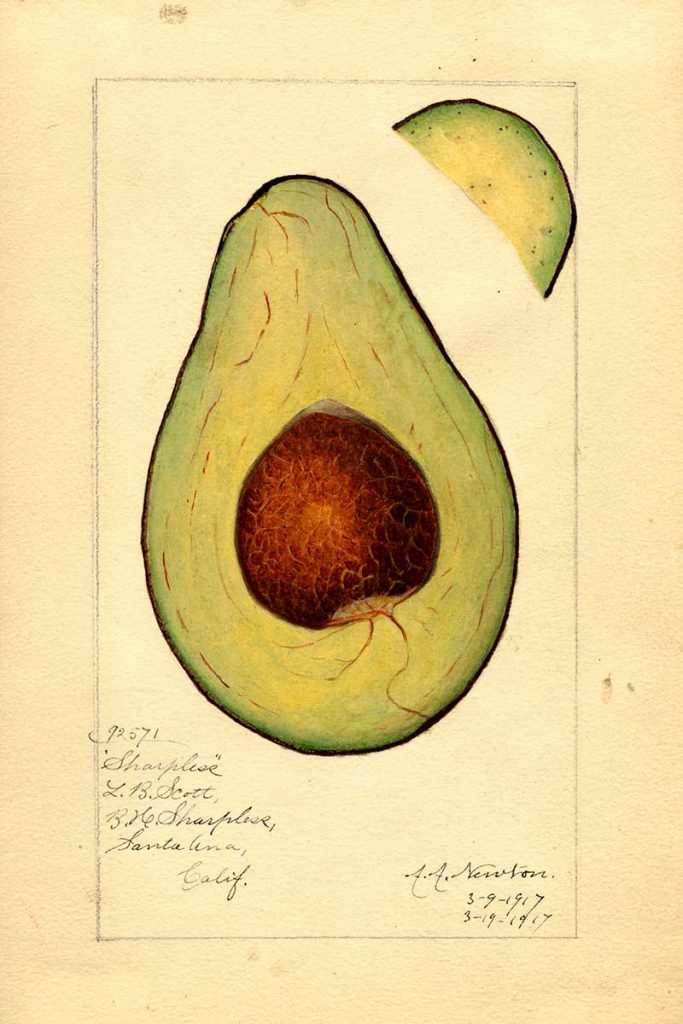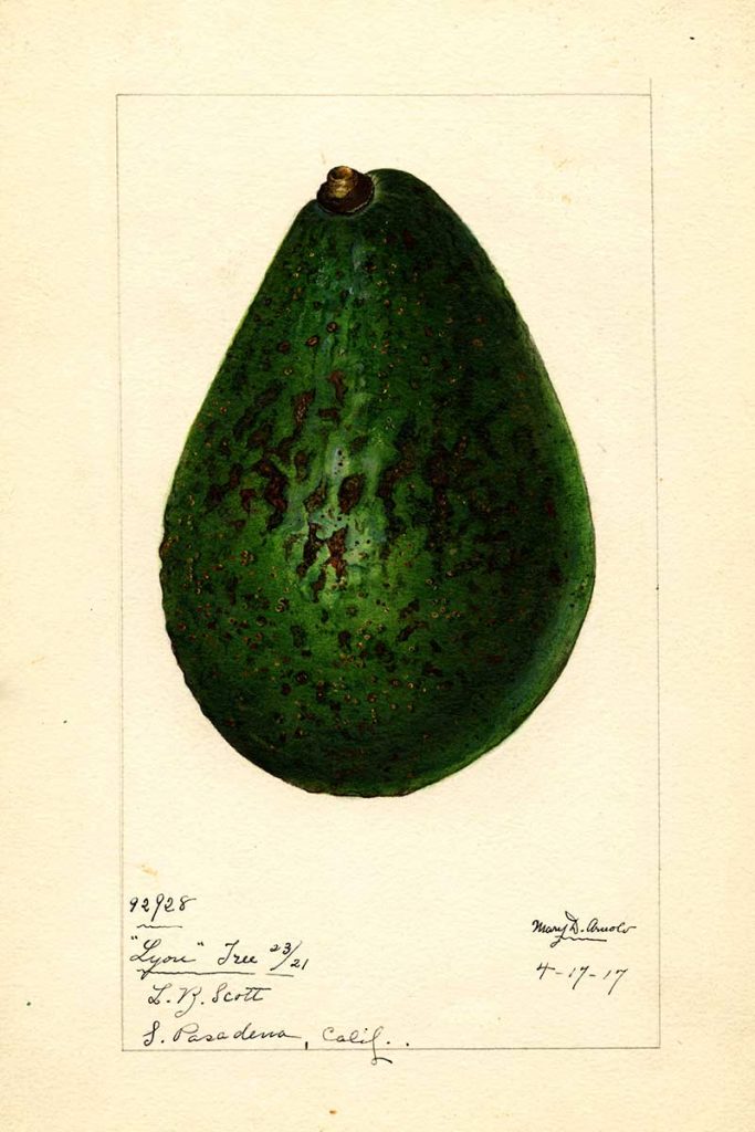An amazing collection of avocado drawings and watercolor paintings from the US Department of Agriculture Pomological watercolor collection.