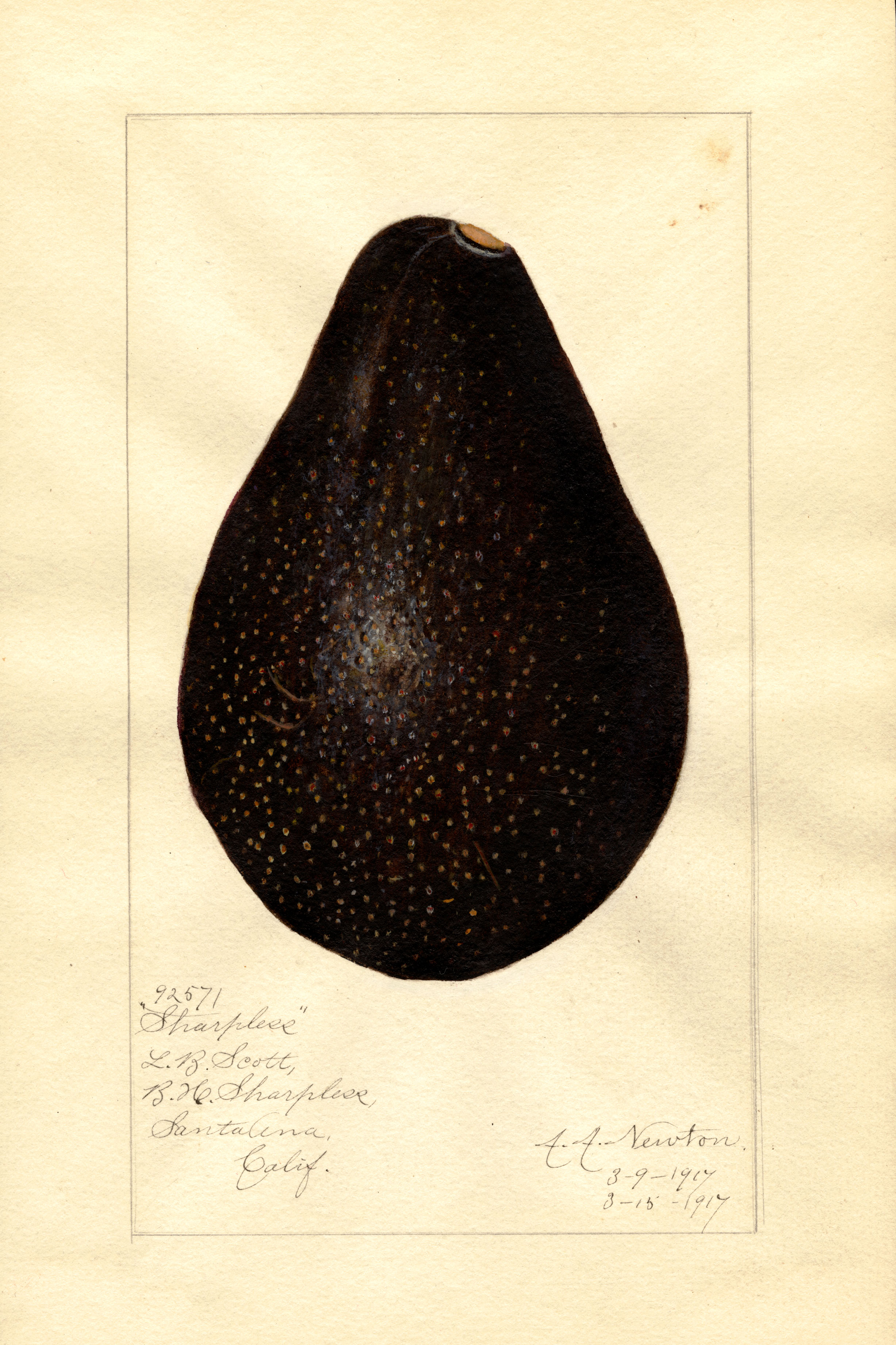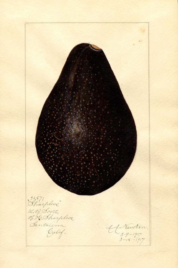 Watercolor of the Sharpless avocado by Amanda Newton 1917.