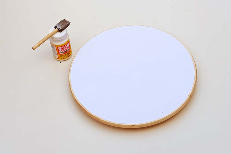 Step 8: Once the Lazy Susan is dried, brush away loose bits of paper from the top. Finish off by sealing the board with a varnish. If you use the board for serving food directly onto it, make sure you use a food-safe varnish or wax.