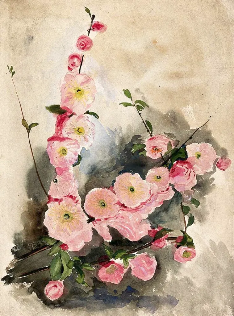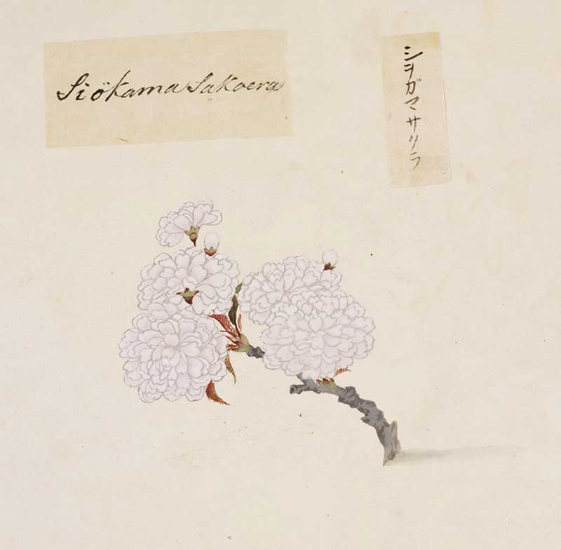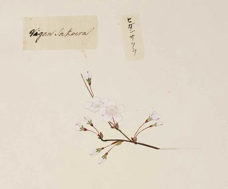 A Cherry blossom pencil drawing with watercolor paints by the Japanese naturalist artist Kawahara Keiga. Painted sometime between 1823-29. This is from the collection at the Naturalis Biodiversity Center, Leiden, Netherlands.