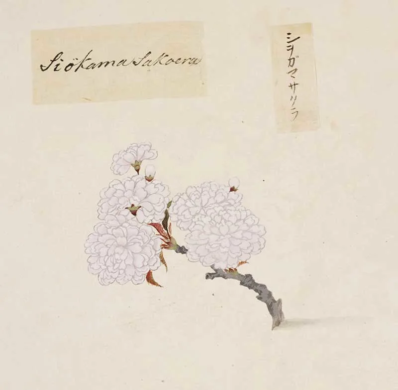 A painting of an ornamental cherry blossom from the Welcome Collection in London.