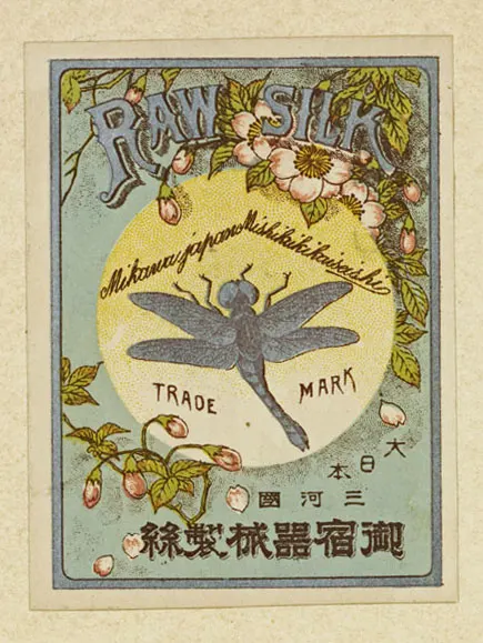 I like the addition of the dragonfly on this vintage label with cherry blossom.