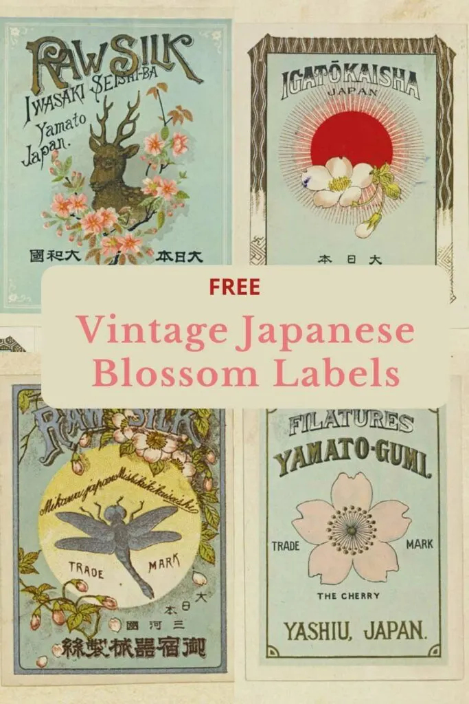 The following cherry blossom drawings are from vintage labels of Japanese raw silk.