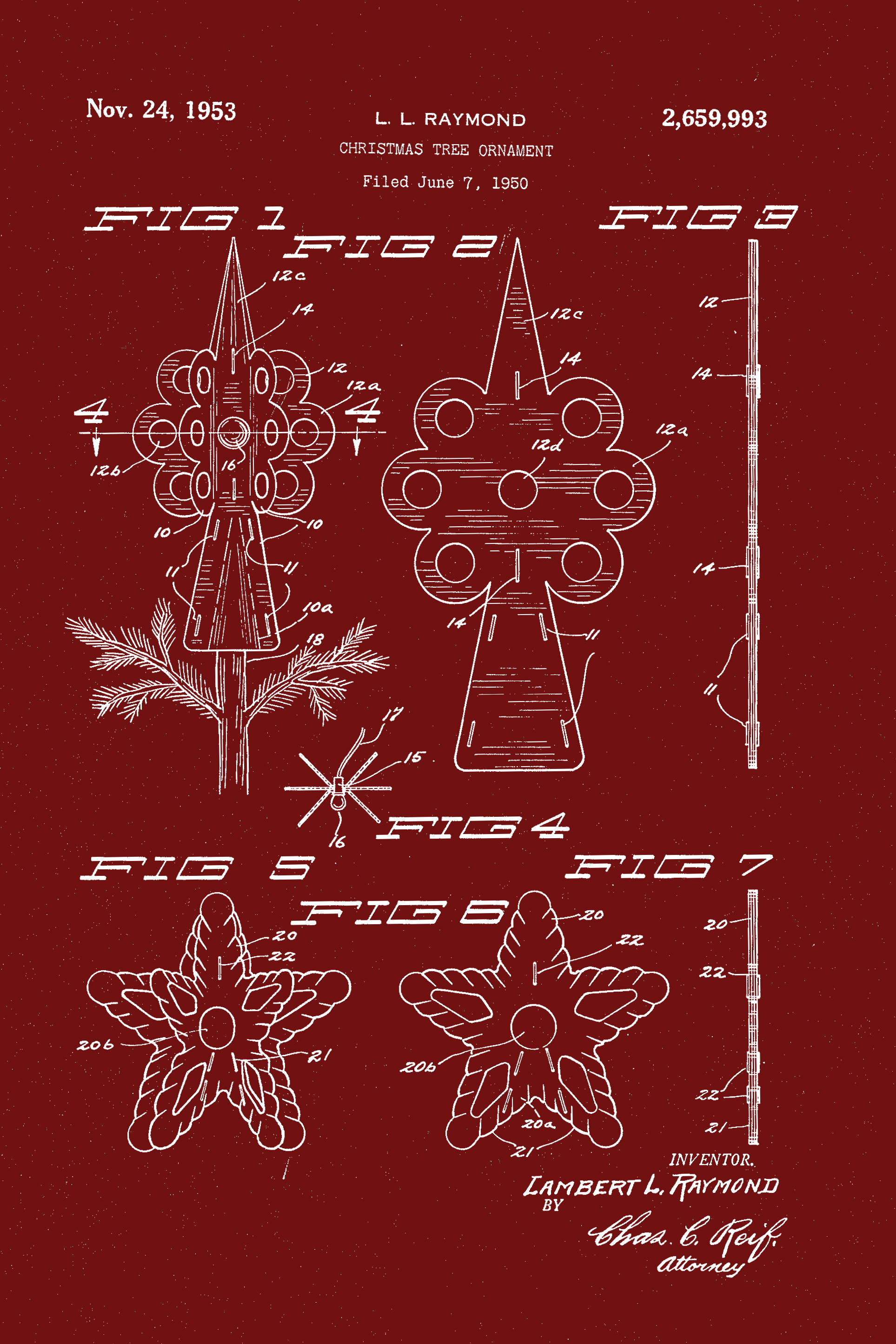 These Christmas inventions patents of tree ornaments can be framed as an alternative Christmas decoration.    They would also make an attractive Christmas card.