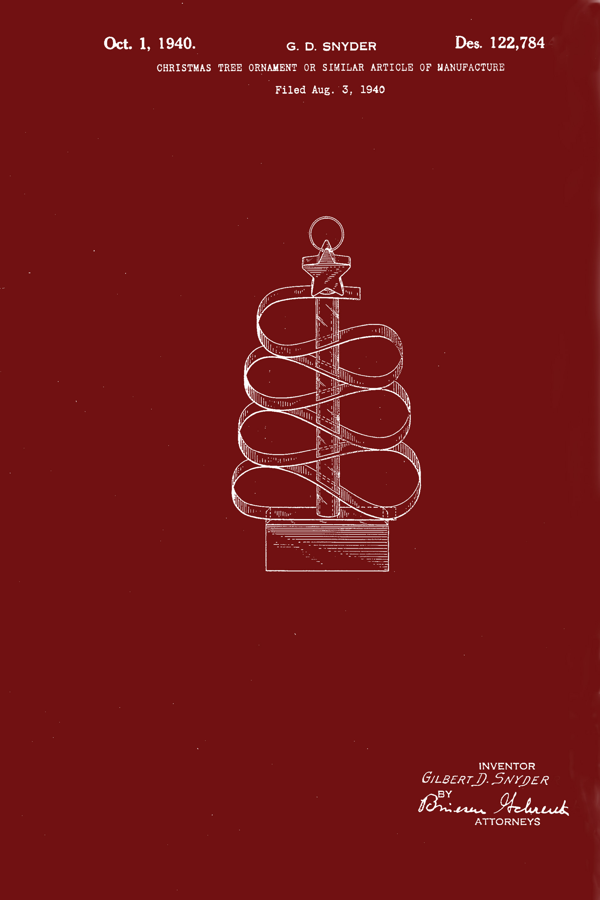 Download the white version of this Christmas tree ornament patent here.