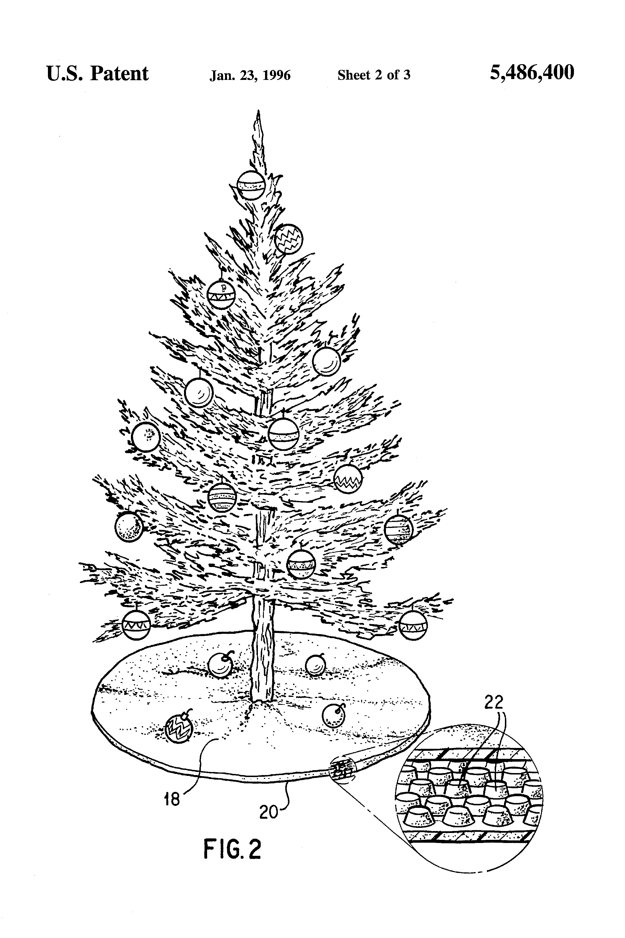 “This Christmas invention relates to a Christmas tree ornament protector (i.e skirt) which provides an absorbent impact layer for falling ornaments to prevent them from breaking and also serves as a decorative base.“