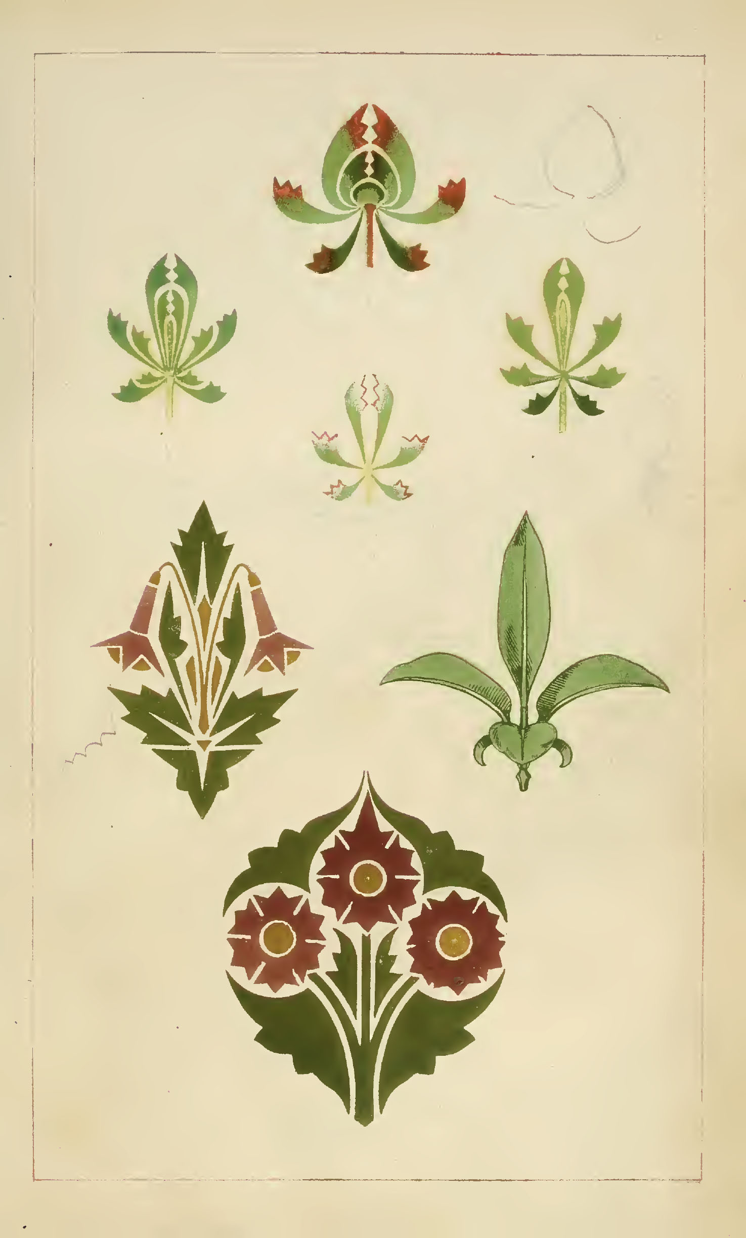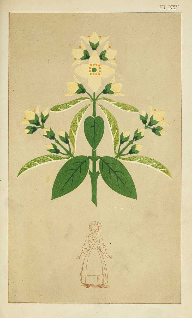 This plate features Christopher Dresser in this chapter. Dresser discusses how plants have a sense of order in their development and are founded on a geometric basis.