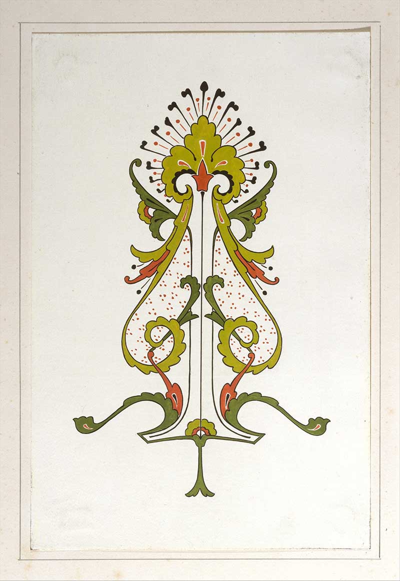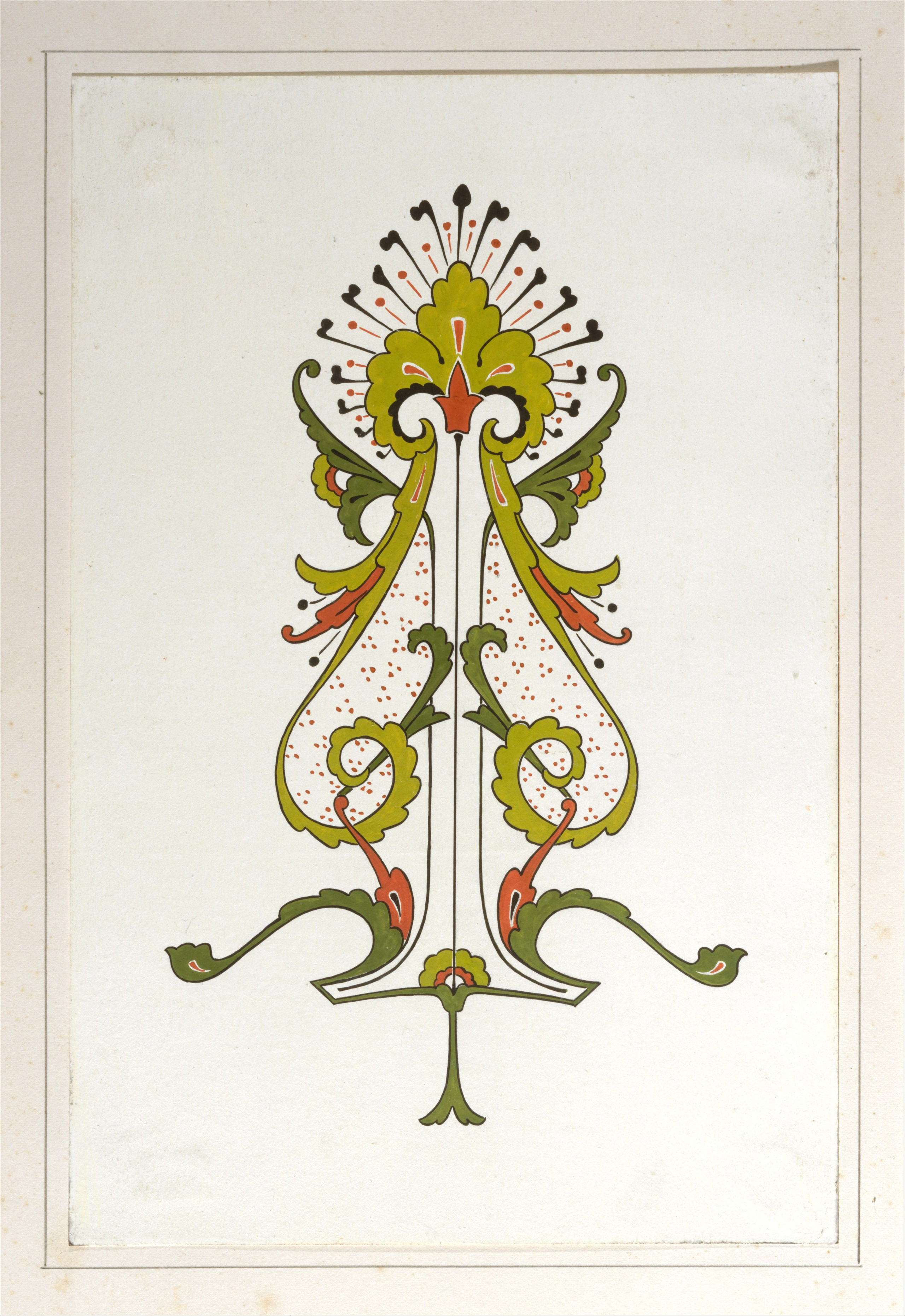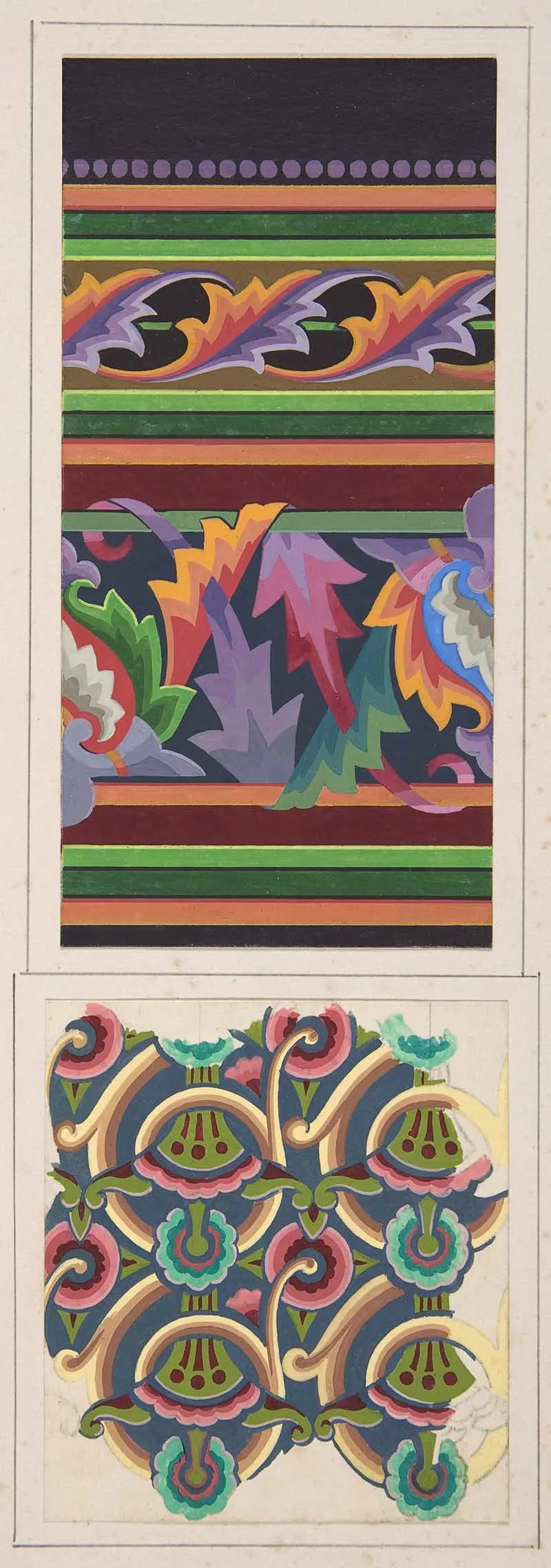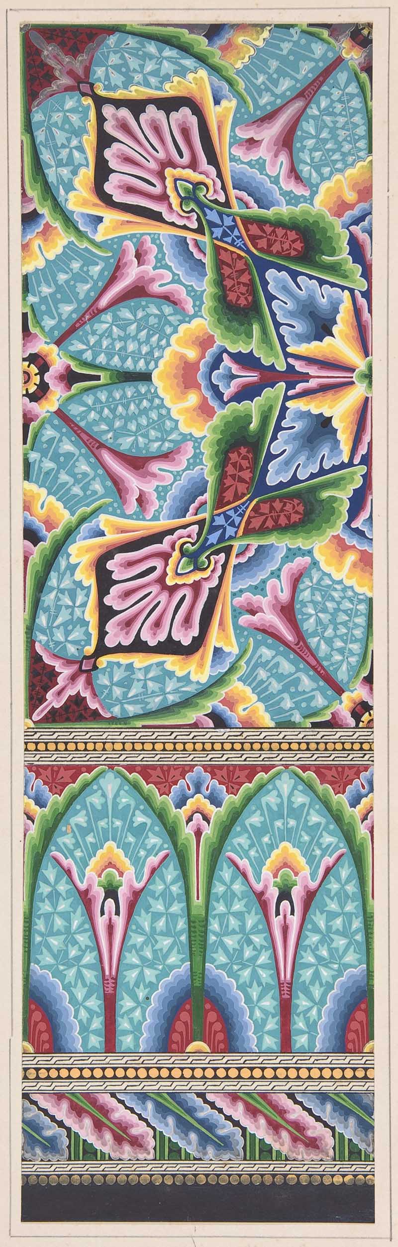 Another vibrant, colourful design by Christopher Dresser painted in gouache with graphite and ink.
