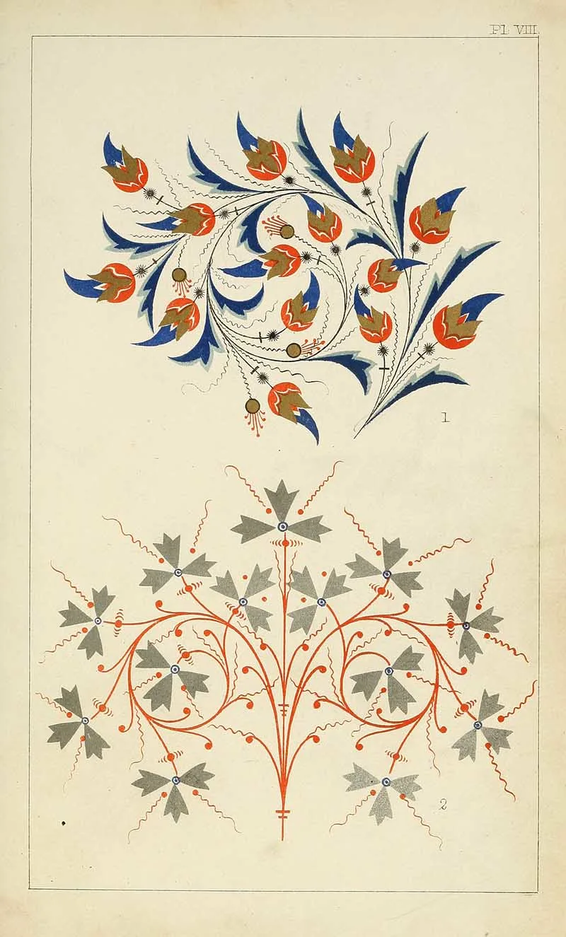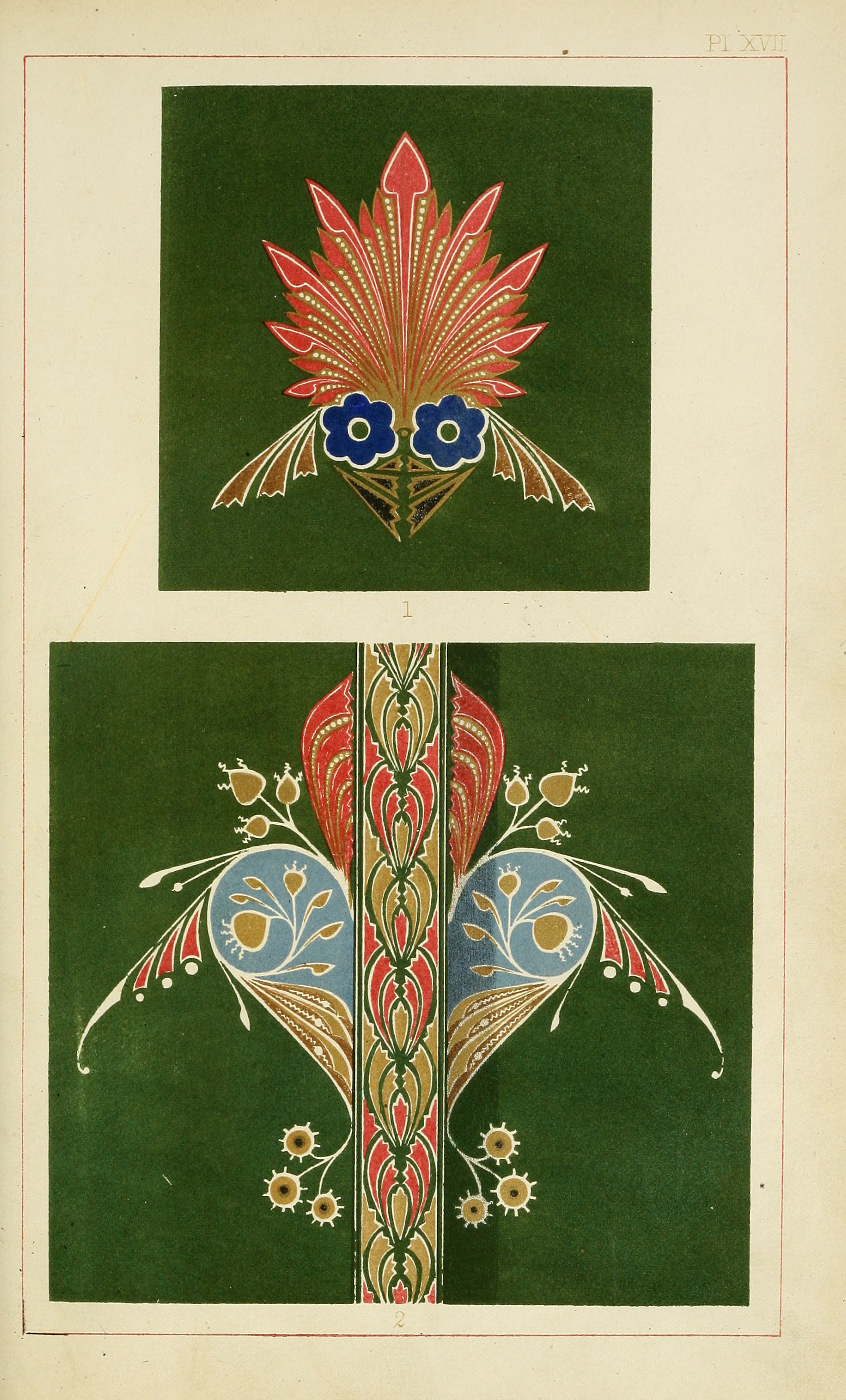 The following prints are from a collection of Christopher Dresser design prints at the Metropolitan Museum.