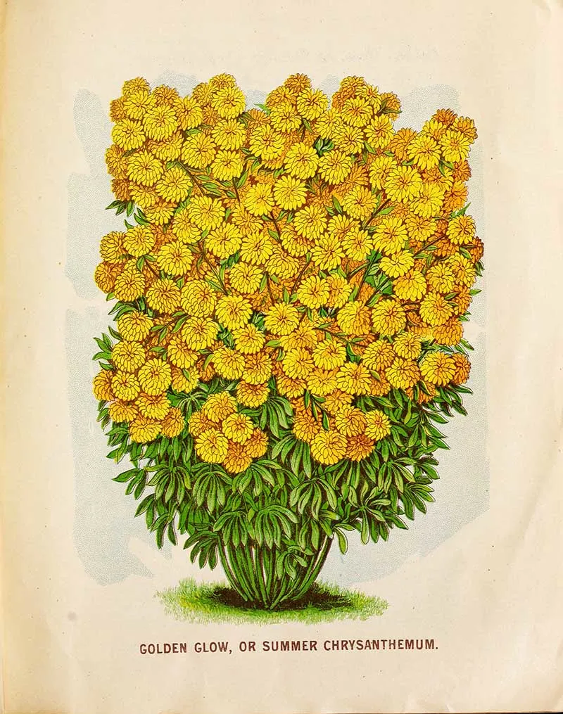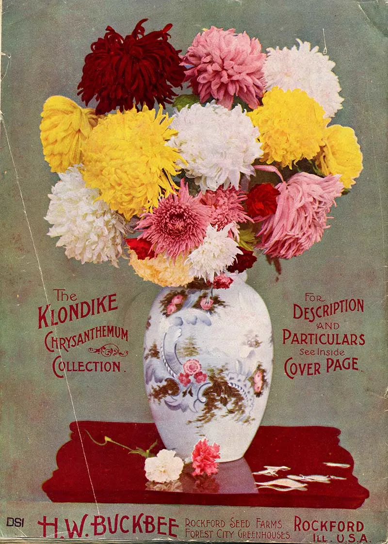 Catalogue and seed packet art of Chrysanthemum botanical illustrations. You can find gardening catalogue roses here.