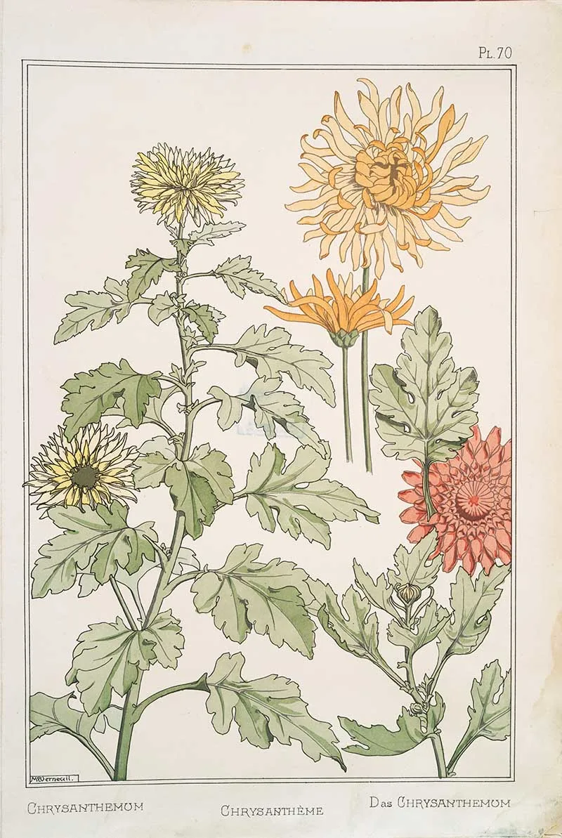 In 1845, Van Houtte began publishing “Flore des serres et des jardins de l’Europe” (“Flowers of the Greenhouses and Gardens of Europe”), a periodical filled with stunning botanical illustrations and detailed plant descriptions. This Chrysanthemum illustration is from that publication.
