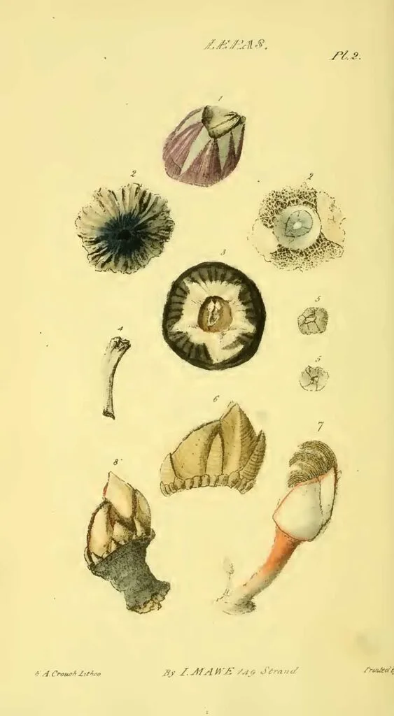 The next group of vintage conchology prints are from “The Linnæan system of conchology : describing the orders, genera, and species of shells arranged into divisions and families : with a view to facilitate the student’s attainment of the science” by Mawe, John; Crouch, Edmund A., lithographer;