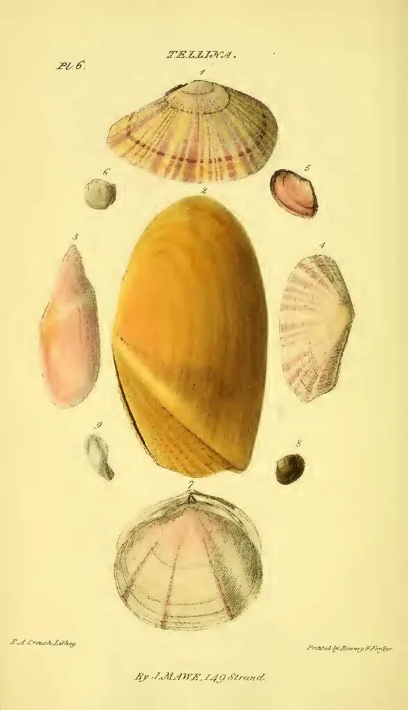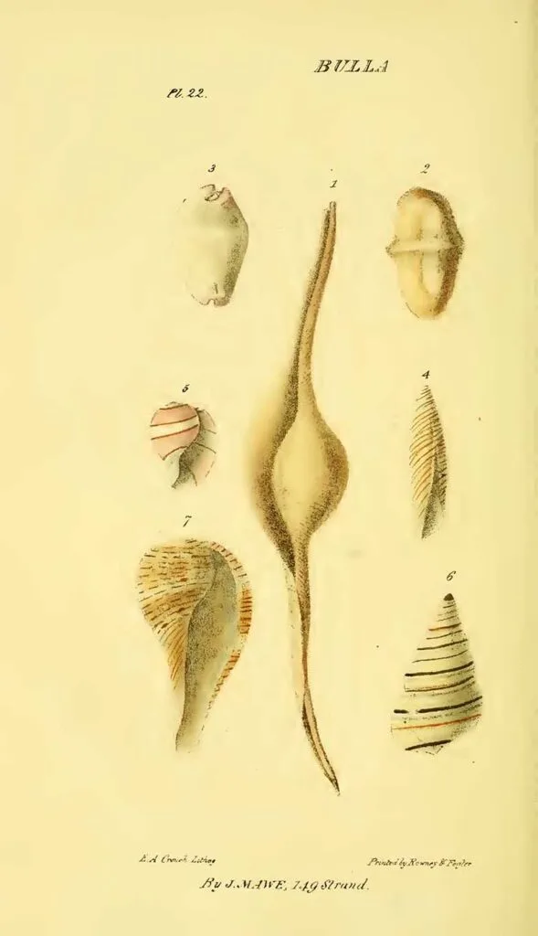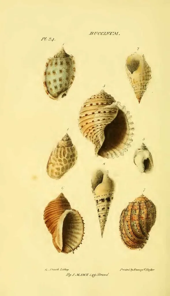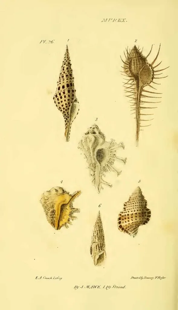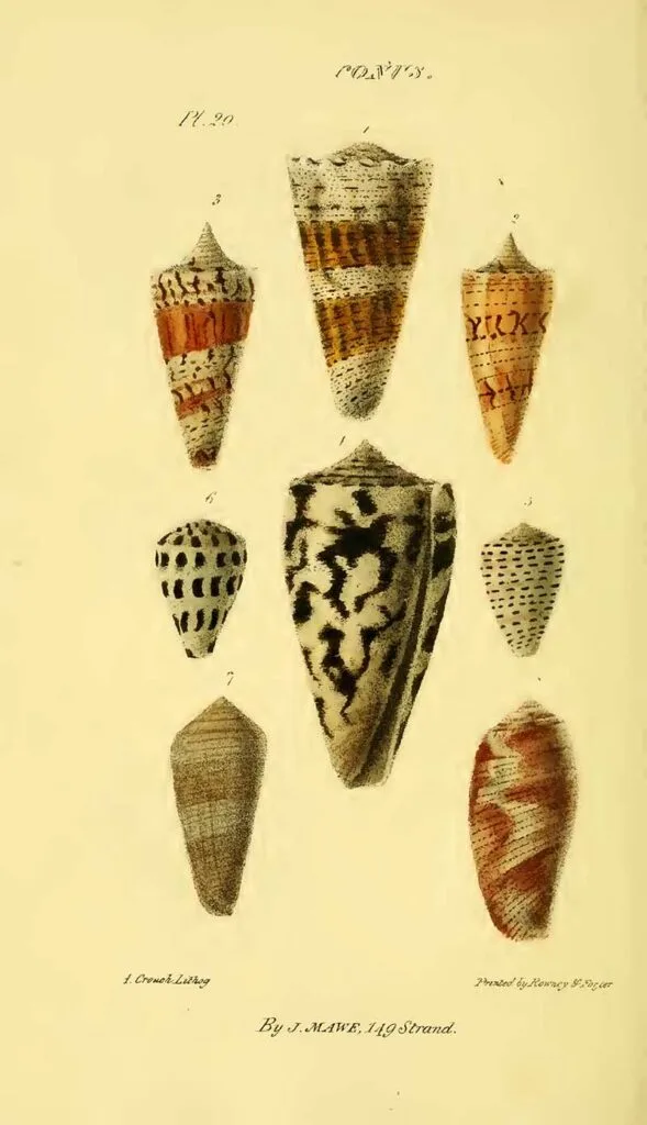 John Mawe, (1764-1829) wrote the first recognised books on the science of conchology, The Voyager’s Companion or Shell-Collector’s Pilot, & The Linnæan System of Conchology.