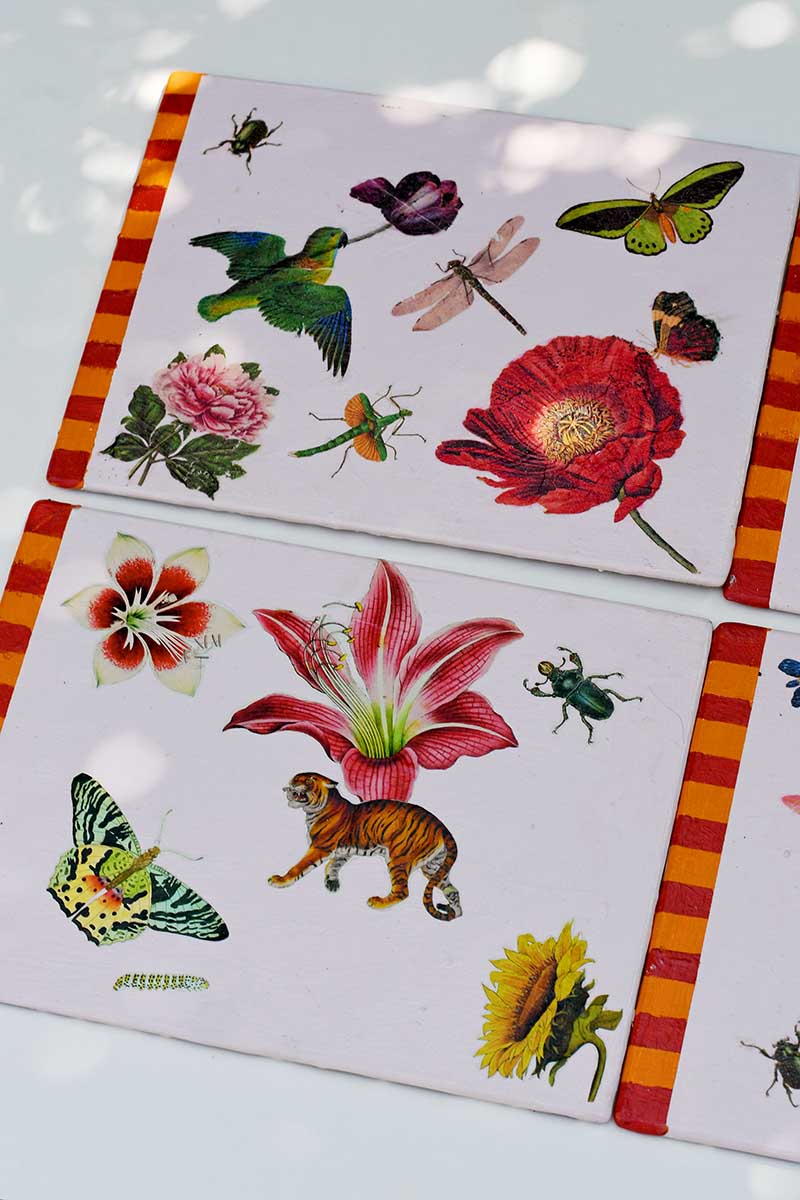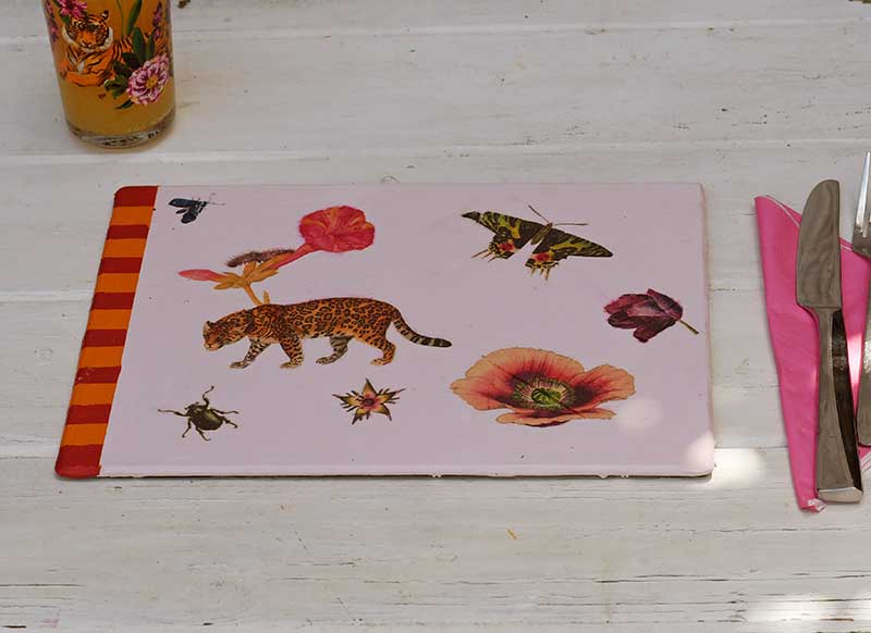 This fun, affordable, easy botanical craft makes something cool for your dining table. I have found that the collage of images on the decoupaged placemats is quite a talking point. And I’m for anything that sparks conversation around the diner table.