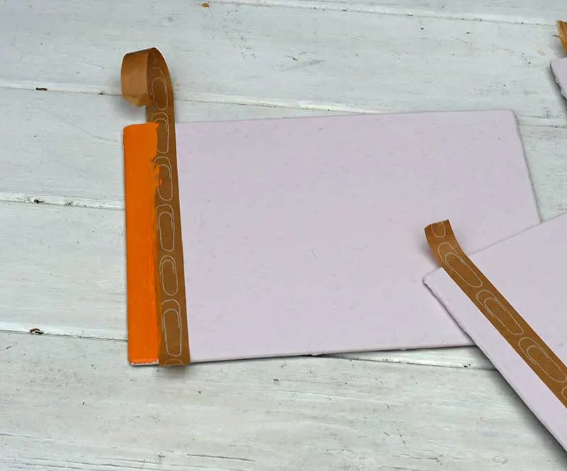 To do this, I marked off the right-hand edge of each mat to make a 1cm orange stripe. I then added dark pink checks to the stripe.