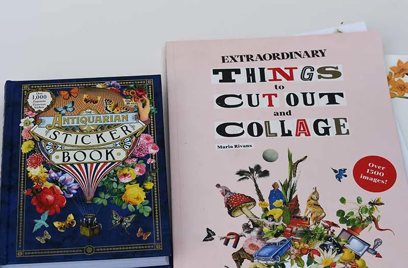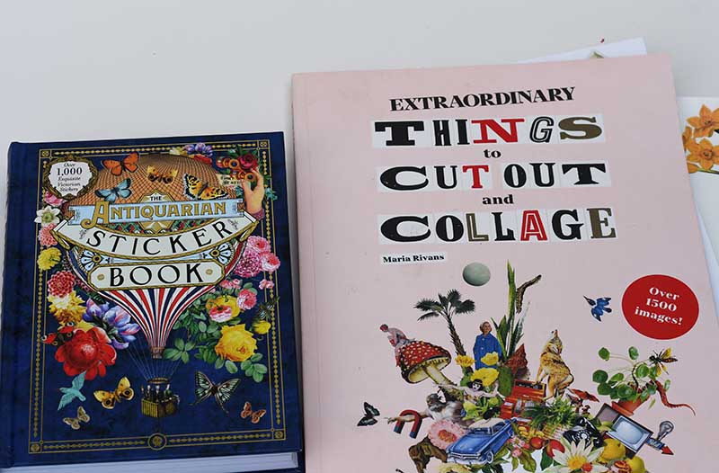 Two books I use are “Extraordinary things to cut out and collage” & “The Antiquarian Sticker Book“