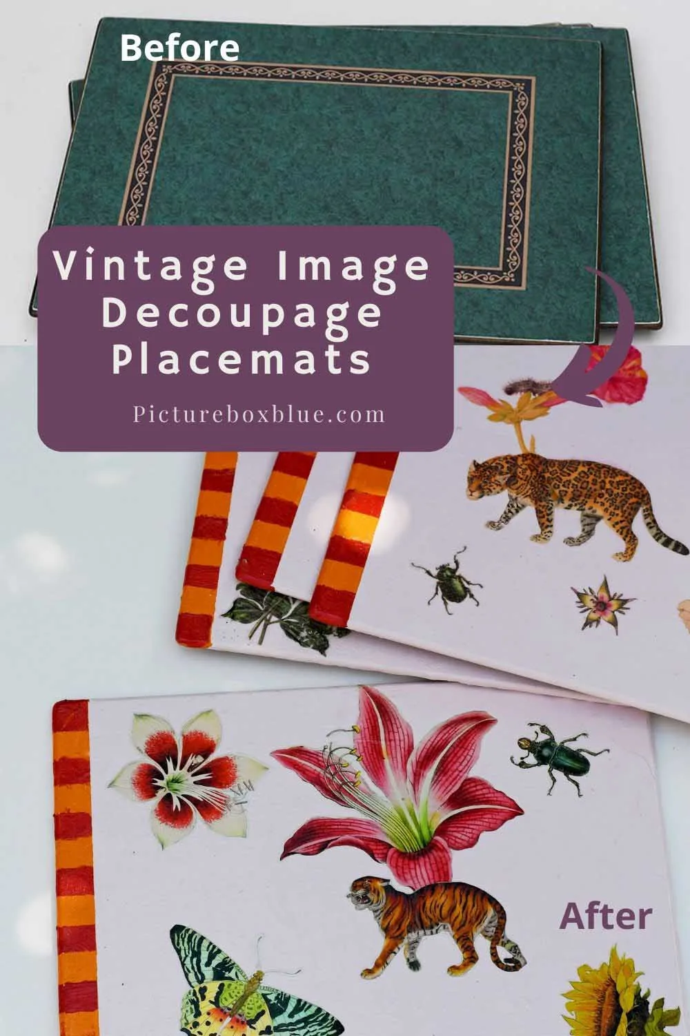 You can find more placemat ideas here. Also, check out some of my other vintage image decoupage crafts.