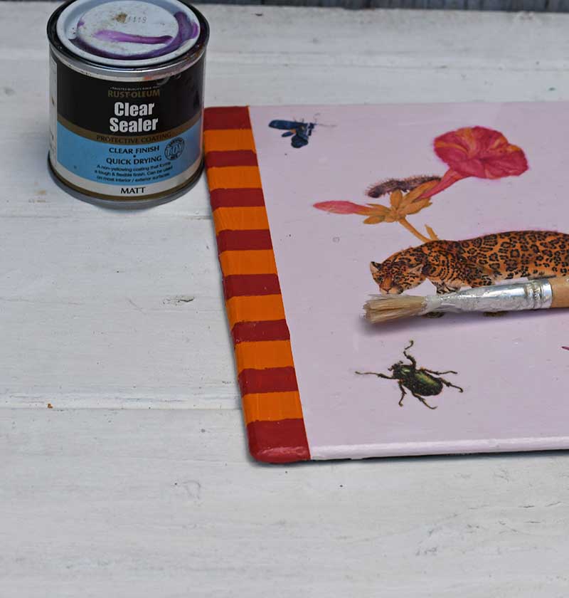 8. Once the glue has dried add a final protective varnish layer to each decoupage placemat.