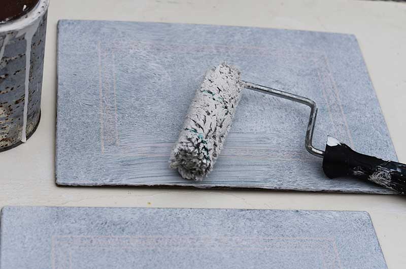 Step1: First, paint over the old design with a primer coat to prepare the placemats for decoupage. Once that has dried, paint the mats with a base colour to suit your décor.