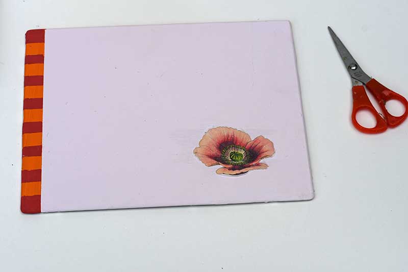 It is best to use a light colour to better show the decoupage vintage images. I used pale pink as the base paint for my placemats.