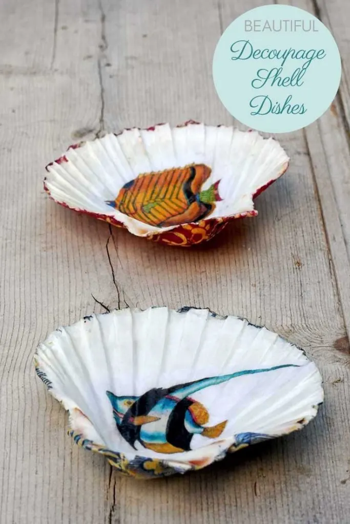 Yes, you can use various seashells, such as scallops, oysters, or clam shells. Larger shells work better for this project as they provide more surface area for the decoupage designs.