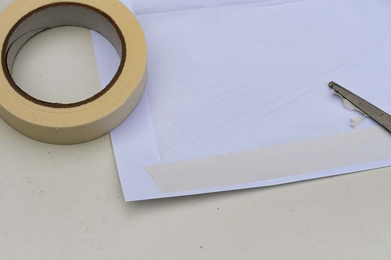 Step 3: Cut a sheet of tissue paper slightly smaller than printer paper. Then, tape the tissue paper to a sheet of printer paper. Place this paper in your printer and print the images you want to use onto it.