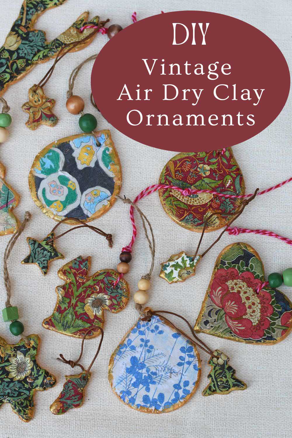Make your own air dry clay ornaments with vintage motifs, decoupage patterns, and metallic touches. A simple and elegant DIY Christmas craft idea for handmade holiday décor.