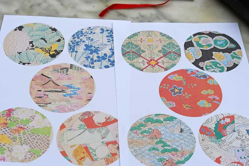 Step 5: I printed the vintage patterns on an inkjet printer at home. I have made two collages of the Japanese pattern designs that you can download here: Japanese Prints 1 & Japanese Prints 2.