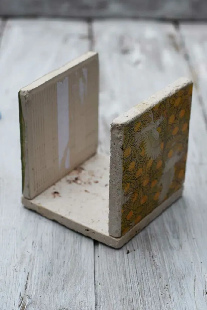Different papers will look slightly different. If you see below, the print on the paper napkin is a lot duller than the tile prints on glossy decoupage paper.