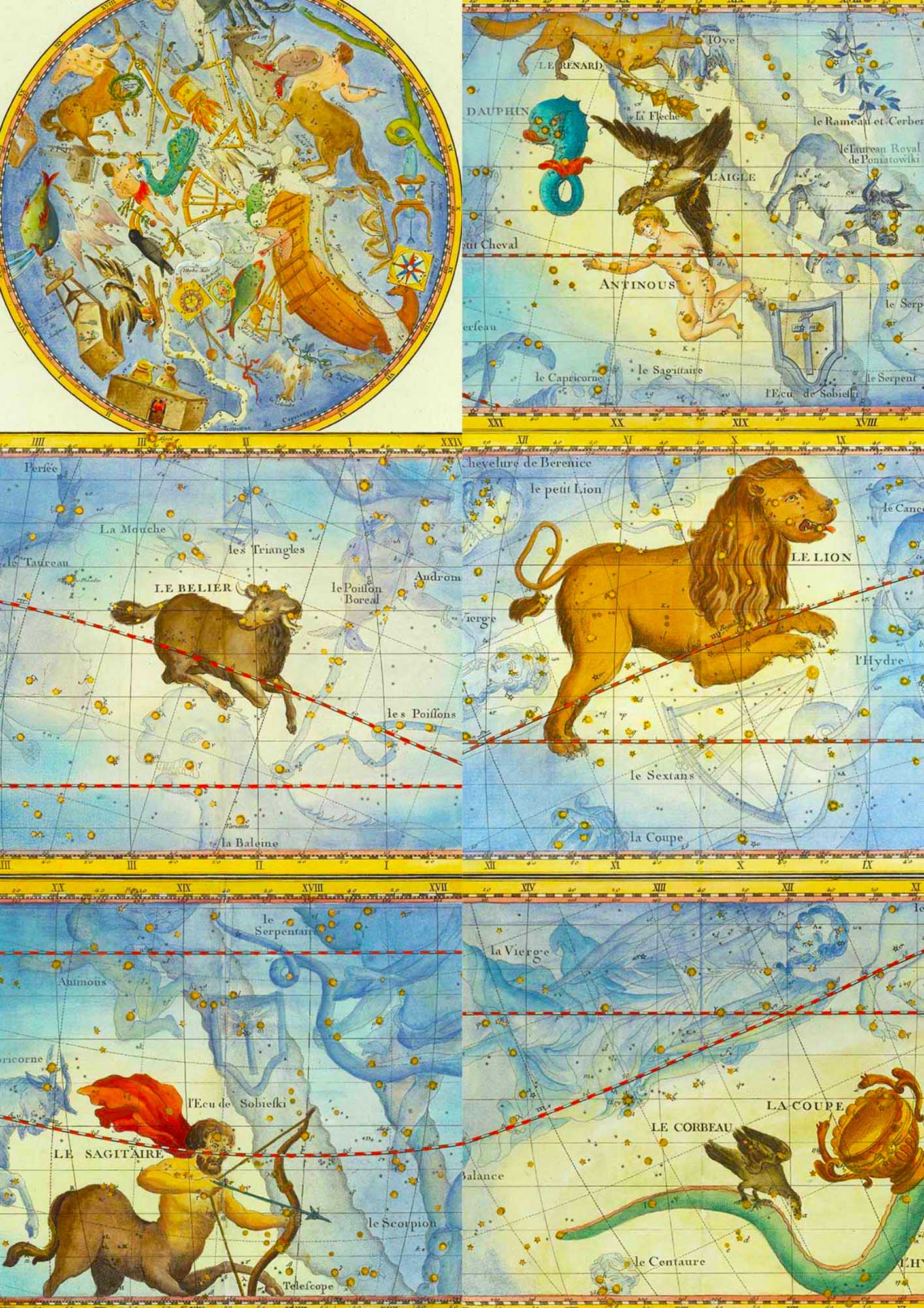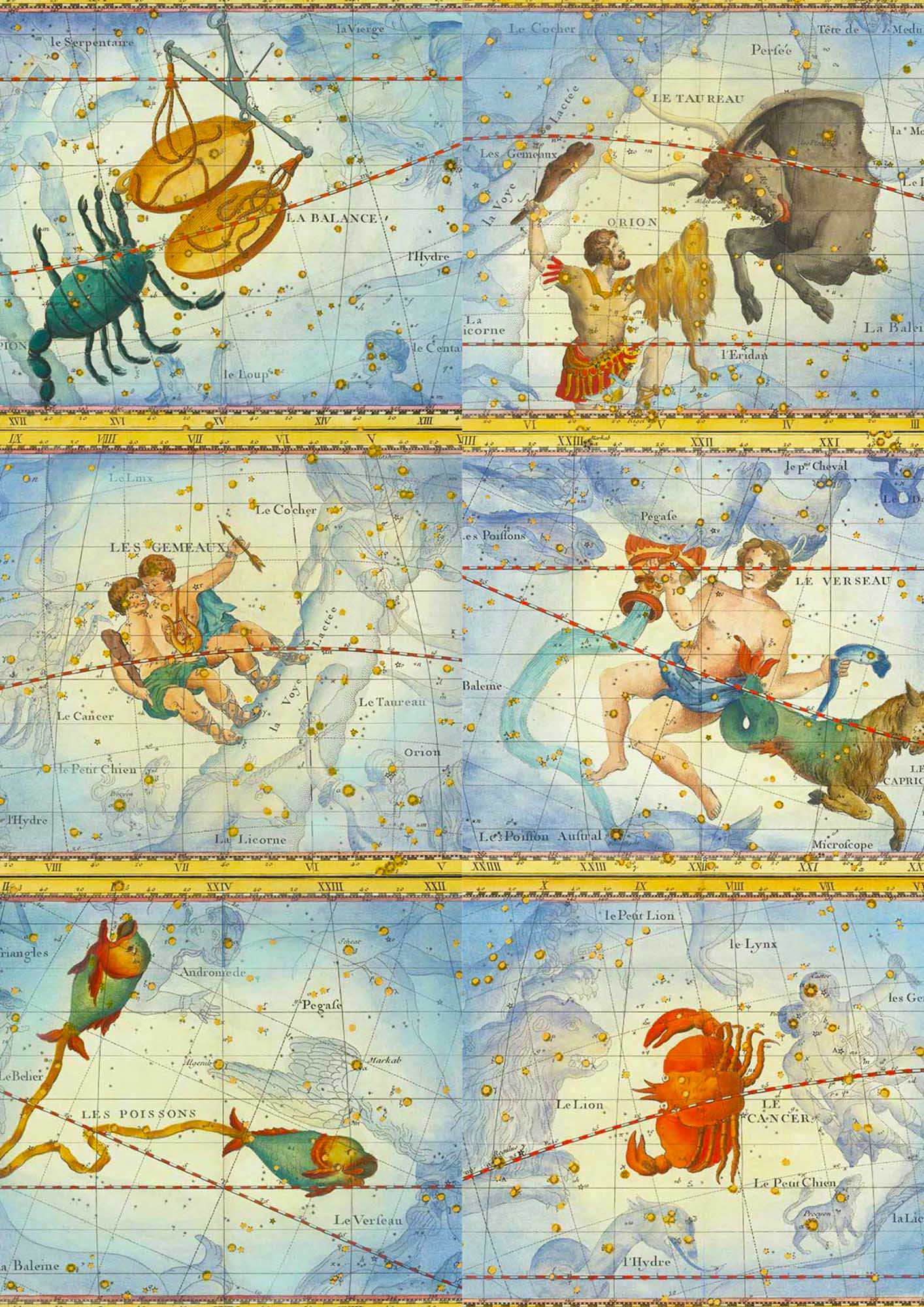The following are the uncropped versions of the star charts used to make the Zodiac ornaments. To download a higher resolution print click on the title above.