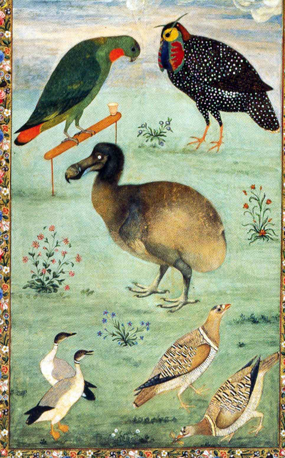 Painting by the Mughal artist Ustad Mansur from c 1625, which may be one of the most accurate depictions of a live dodo.