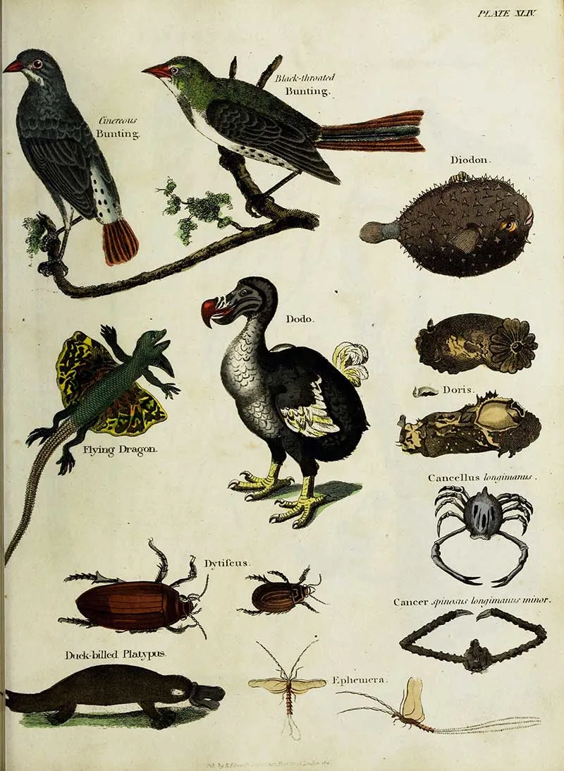 This dodo drawing is on one of Oliver Goldsmith’s vintage nature posters from his book “A History of the Earth and Animated Nature.”