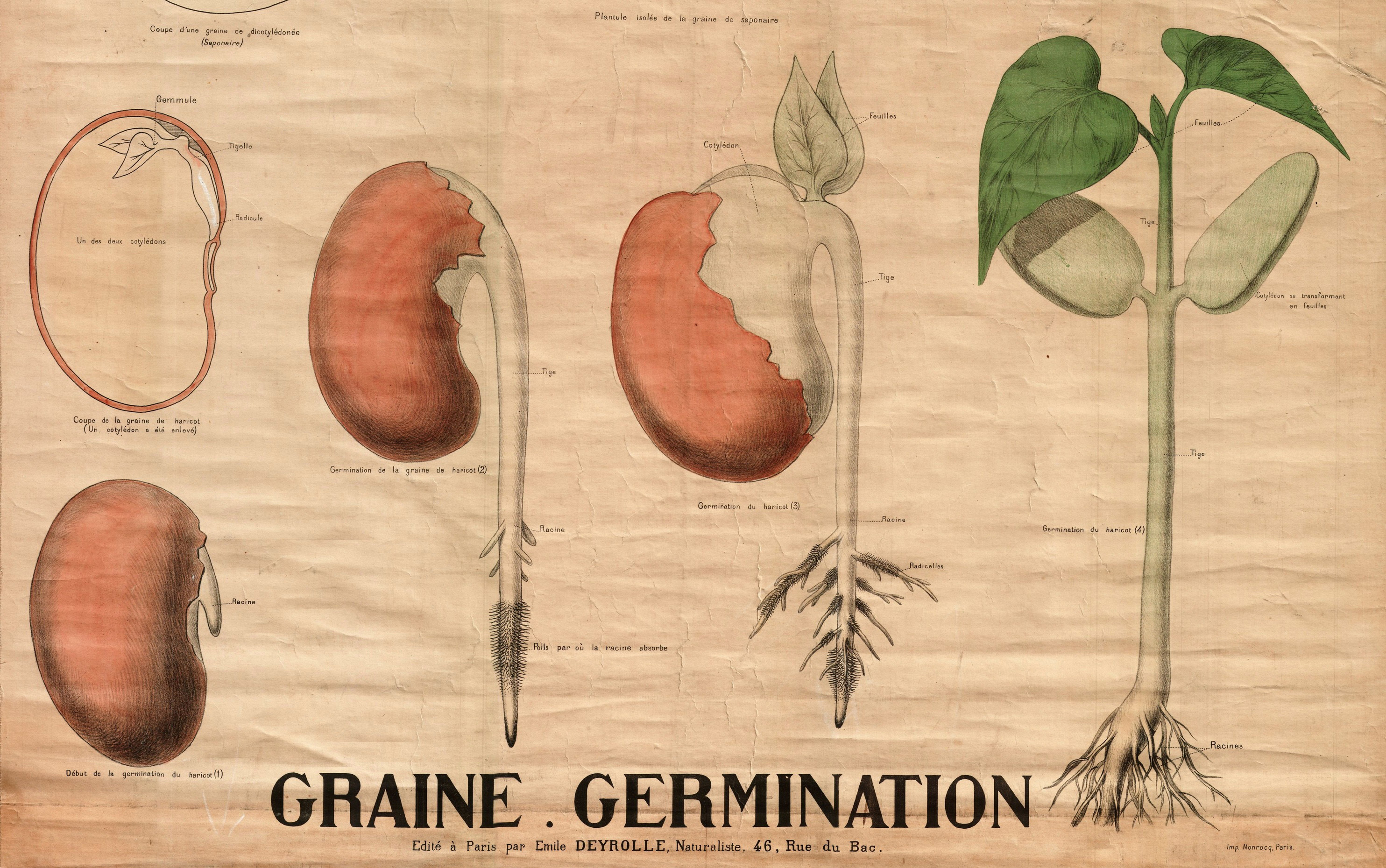 Vintage classroom poster showing the anatomy of the potato. Pomme De Terre literally translates as “apple of the earth.”