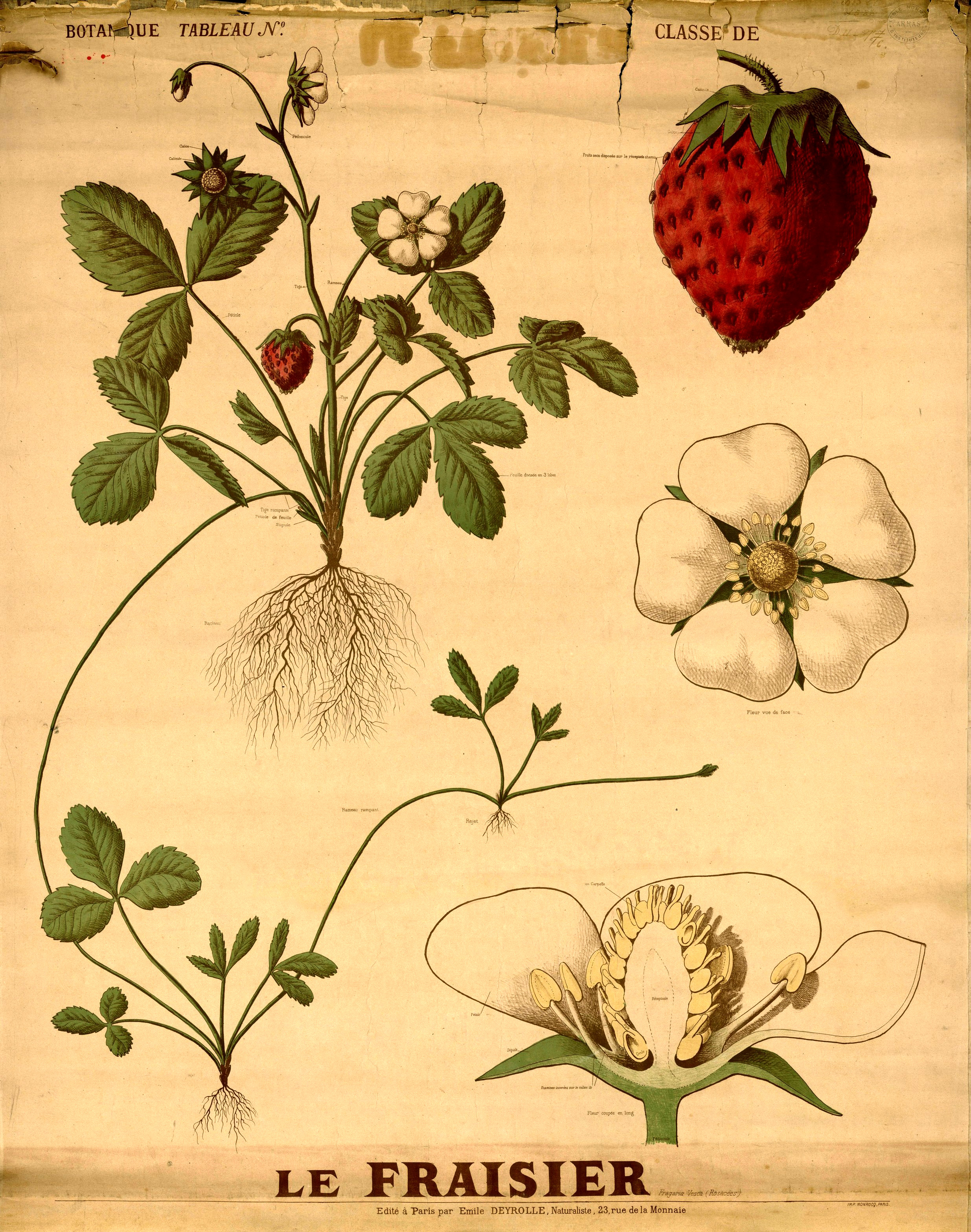 Classroom poster showing the anatomy of the strawberry plant. There are some wonderful strawberry watercolors in the Pomological fruit collection on Pictureboxblue.