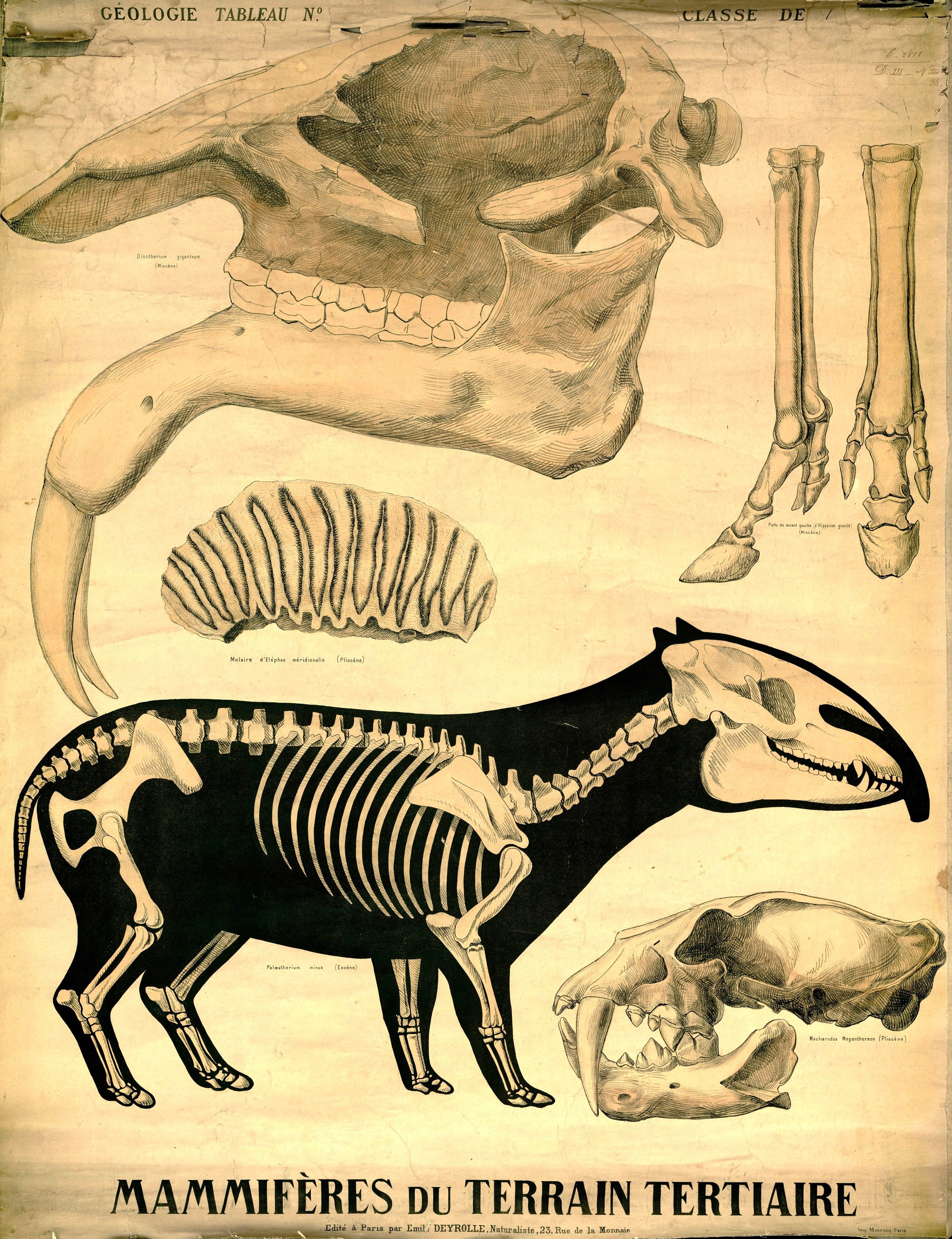 This poster is of a skeleton of a palaeotherium minus, an extinct horse like European herbivore.