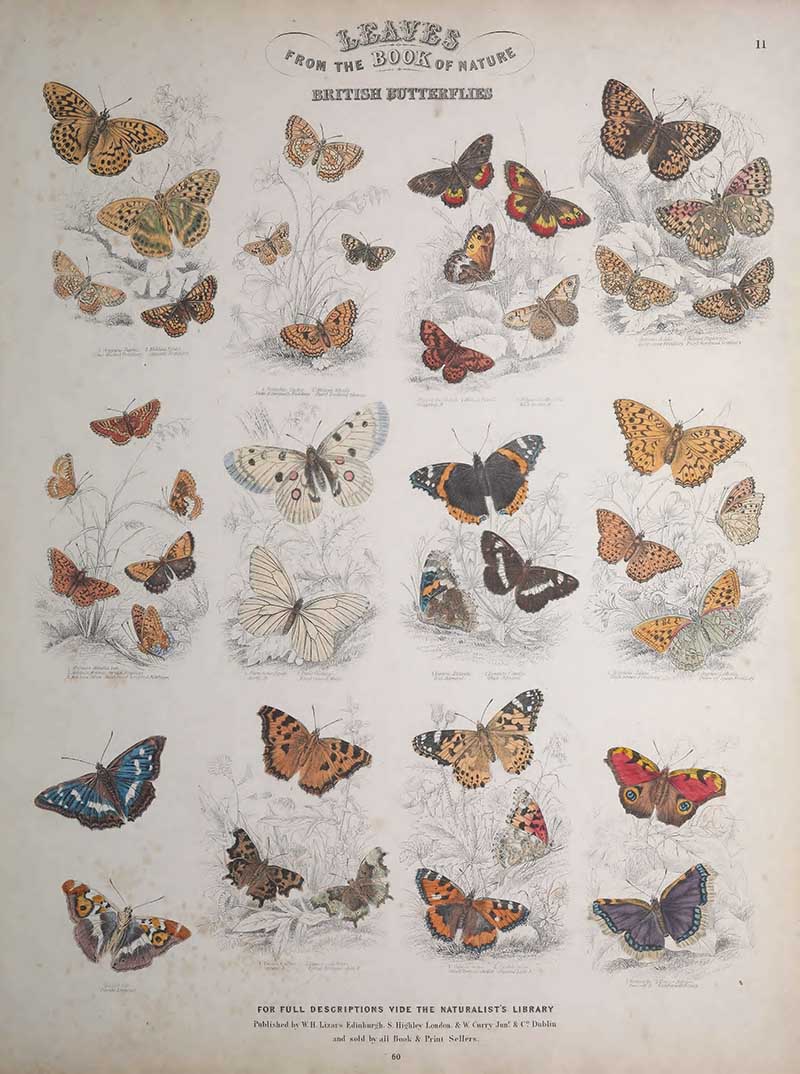 This section features British butterflies and moths, with three prints dedicated to each. These illustrations offer a glimpse into the species commonly found across the UK, from familiar garden visitors to more elusive woodland moths. The plates are carefully detailed, reflecting the subtle beauty and variety of native British lepidoptera.