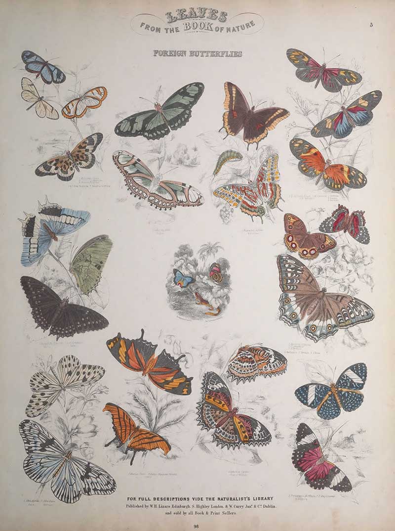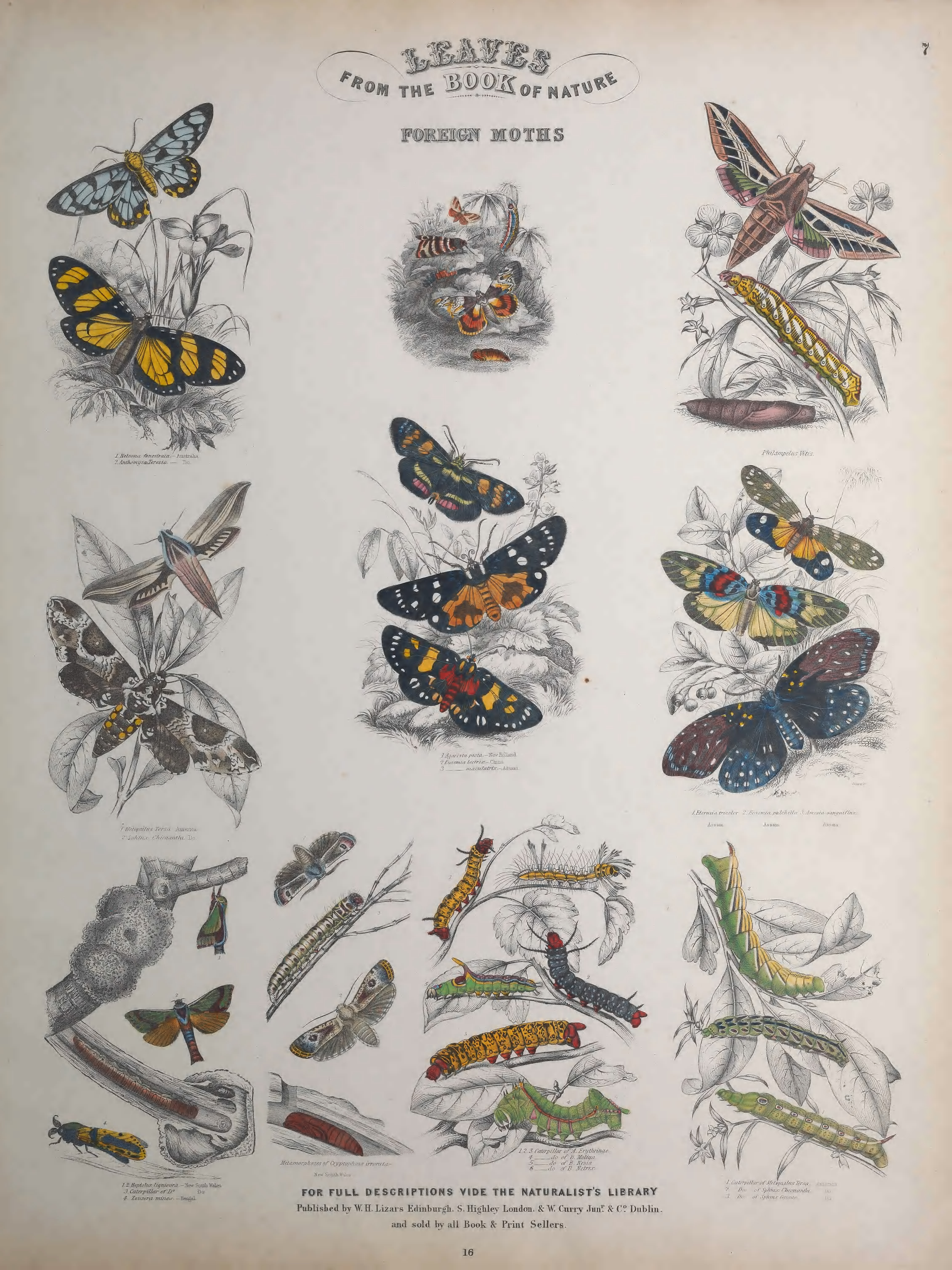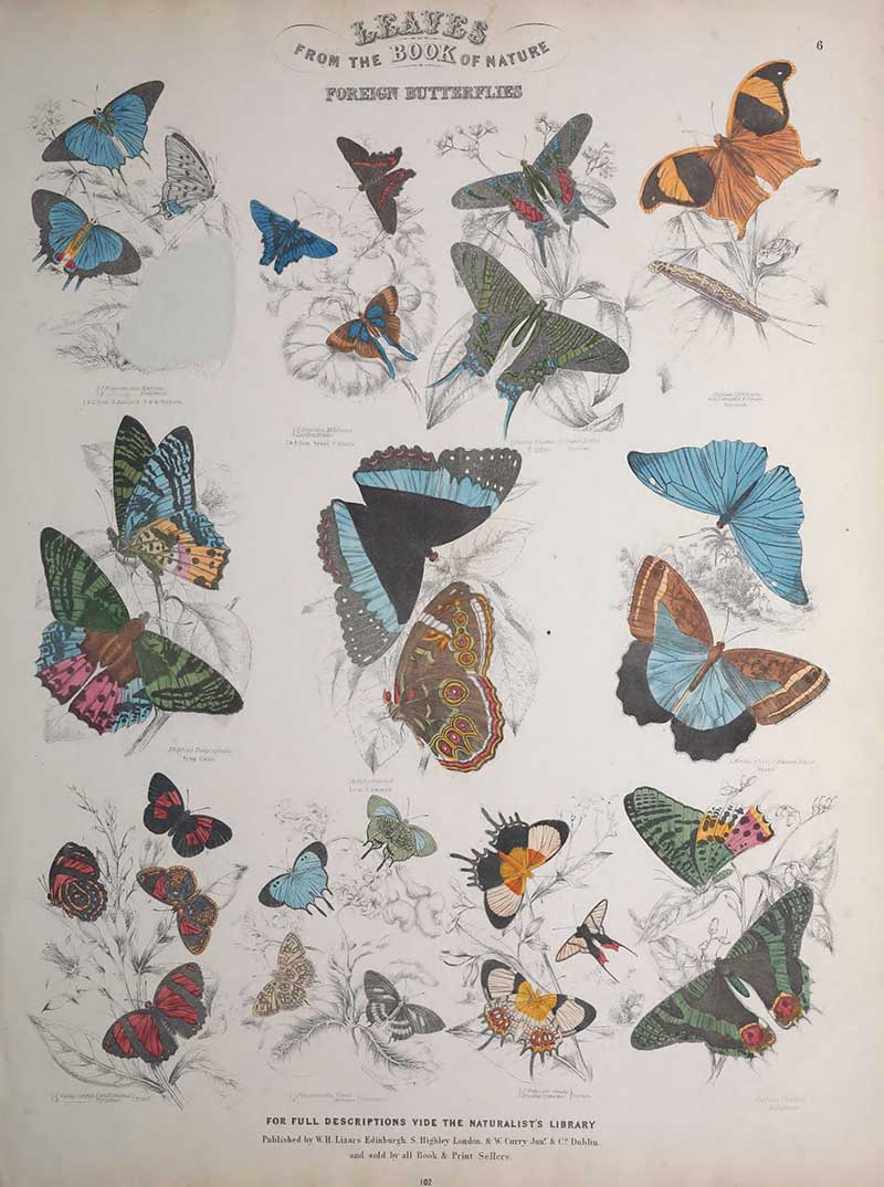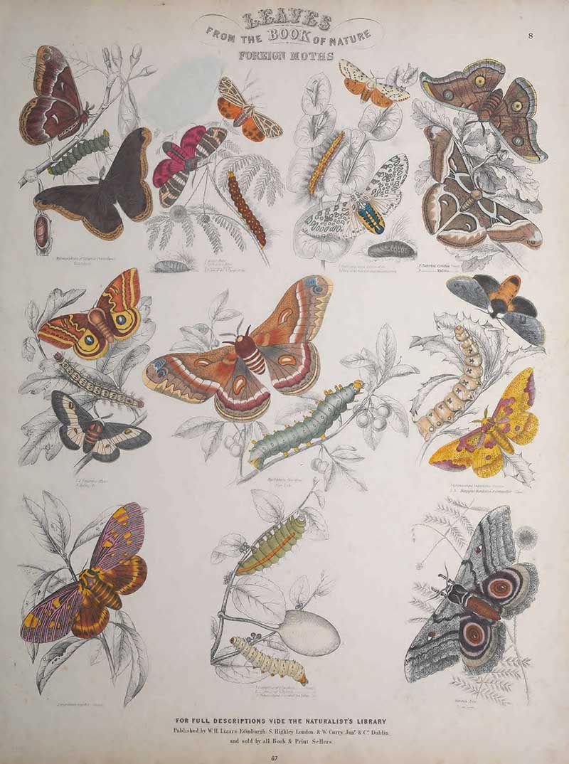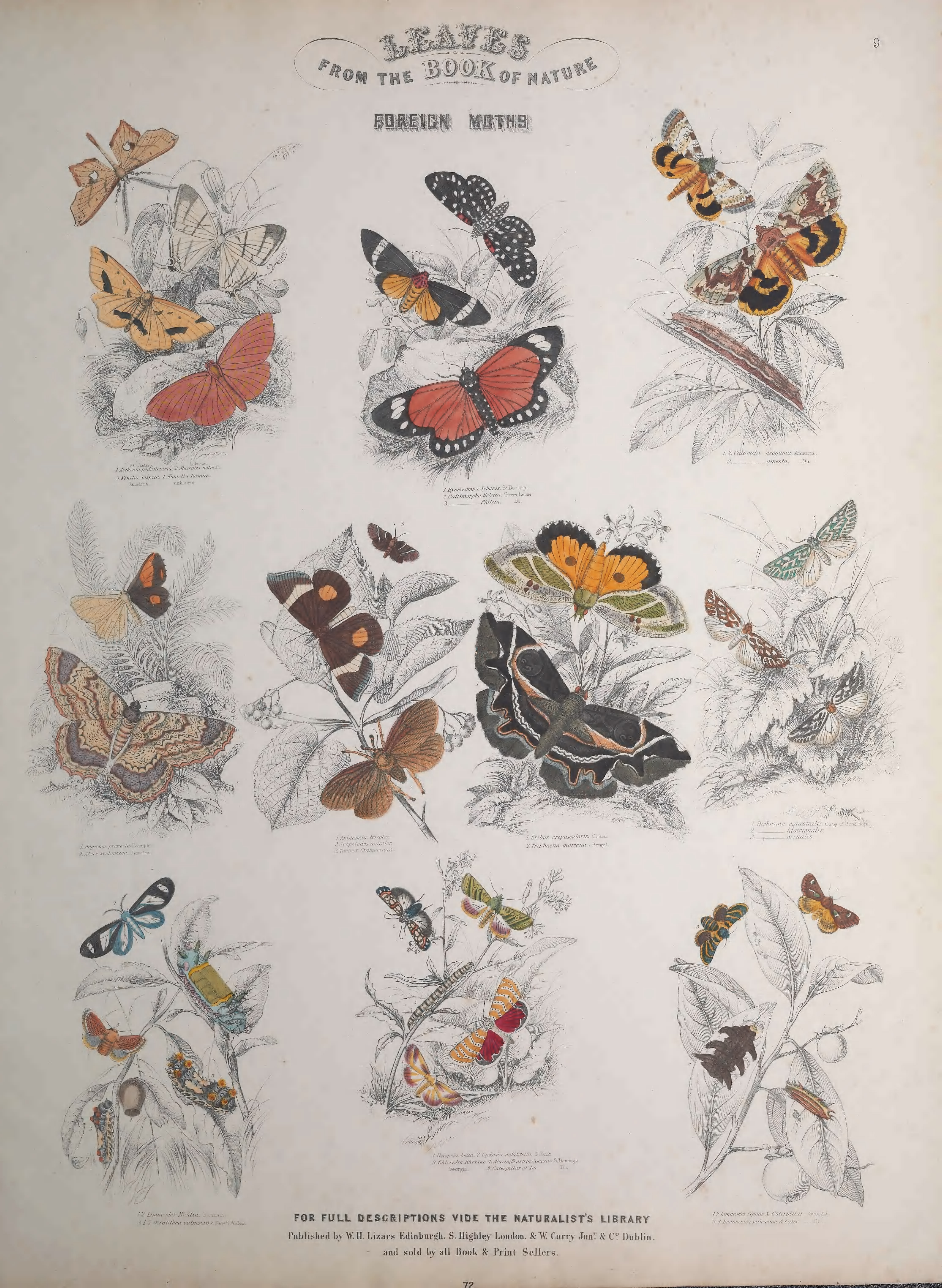 The next set of prints focuses on foreign butterflies and moths, highlighting species found beyond Europe. There are three plates of butterflies and three of moths, each offering a closer look at the remarkable variety in wing patterns, shapes, and colours across different regions. These illustrations capture both the elegance and complexity of these insects, giving a sense of just how diverse the world of lepidoptera can be.