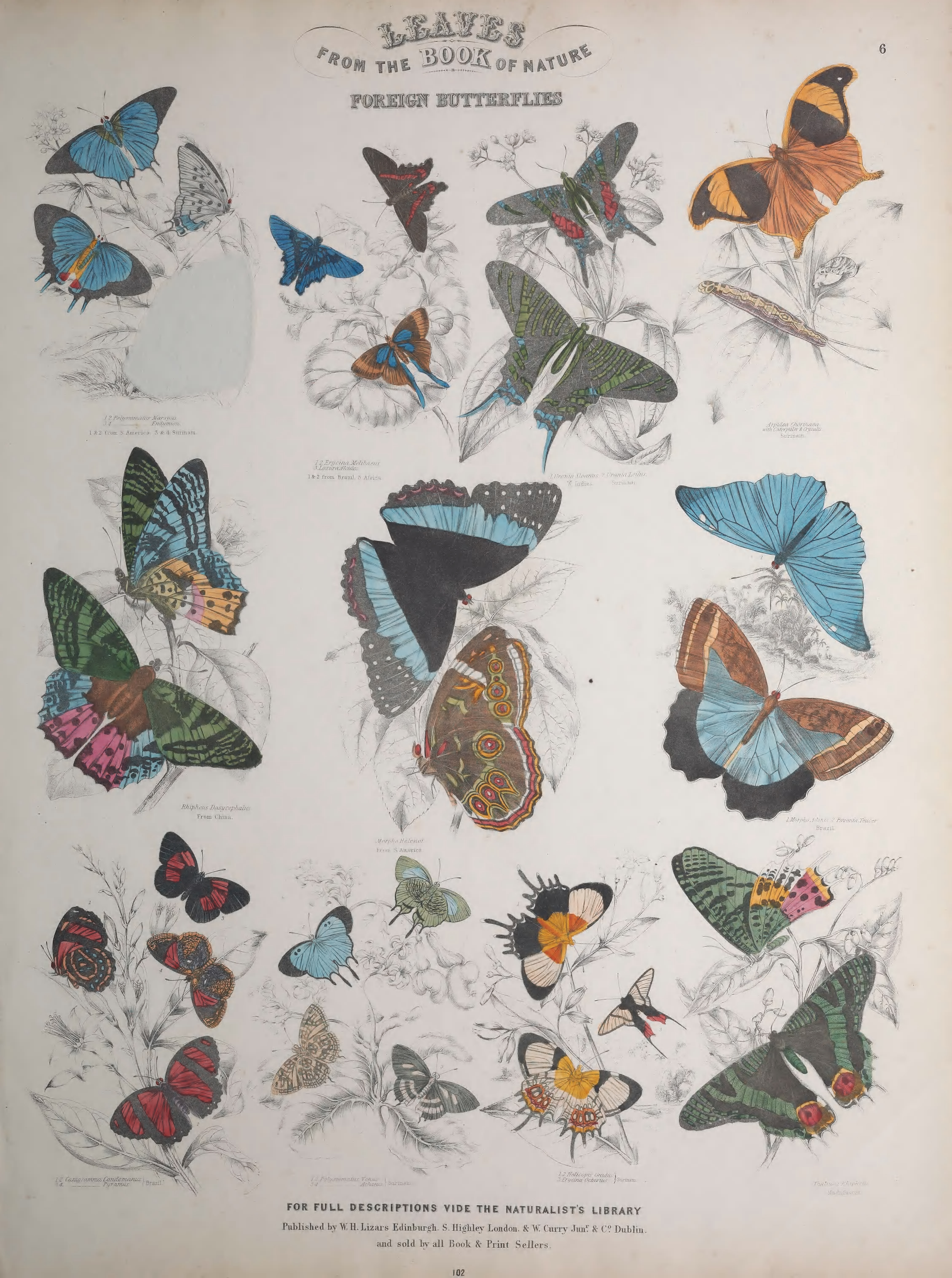 I noticed that one of the butterflies was missing from the original scan of this plate. Fortunately, I found a more complete version in another library collection, so I’ve included both versions here (labelled A and B) for comparison.