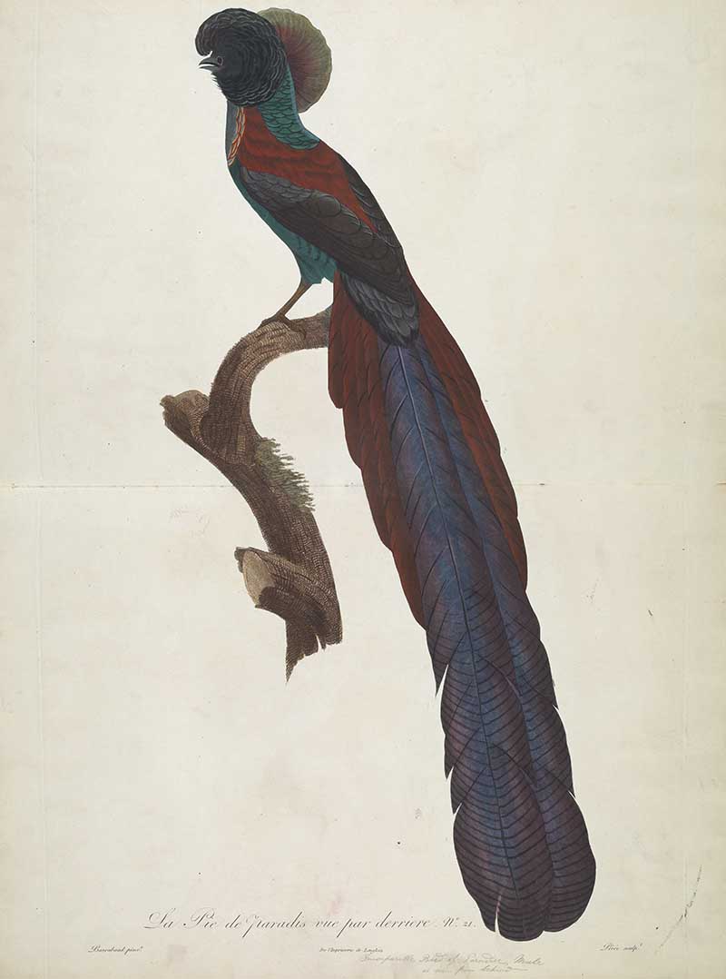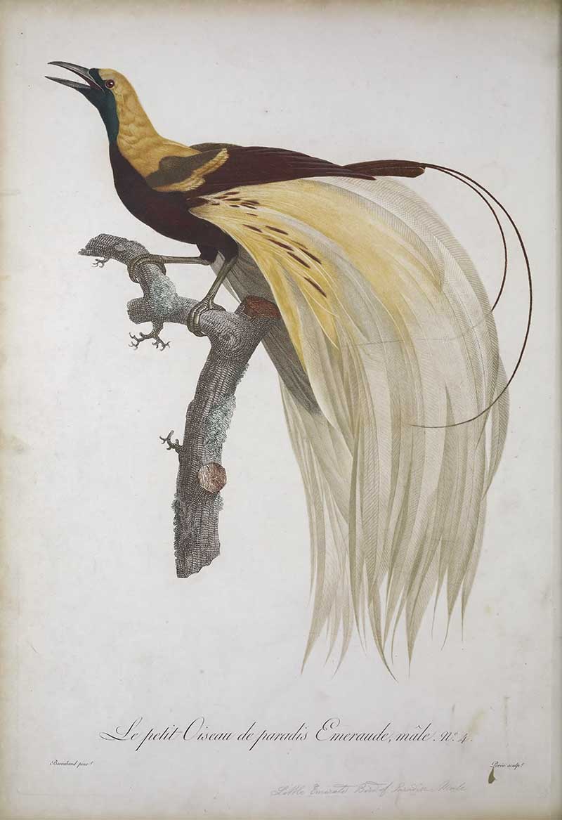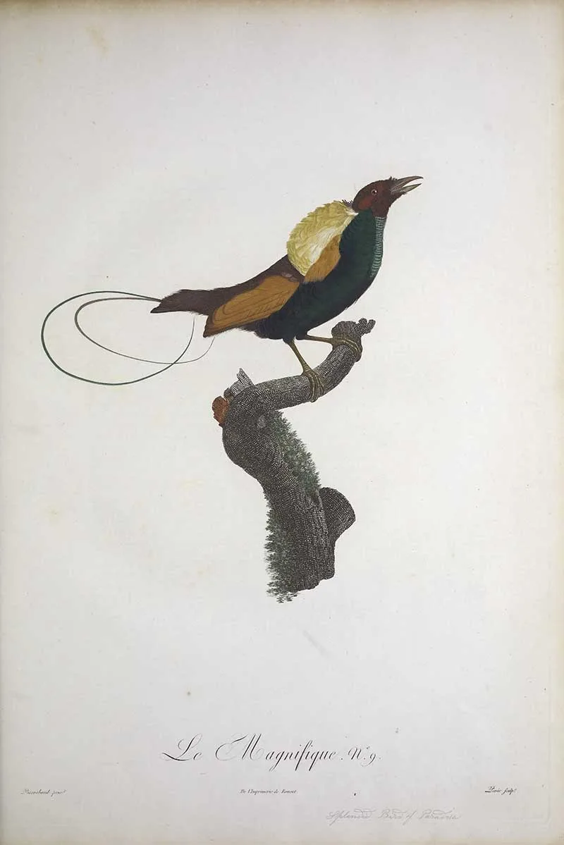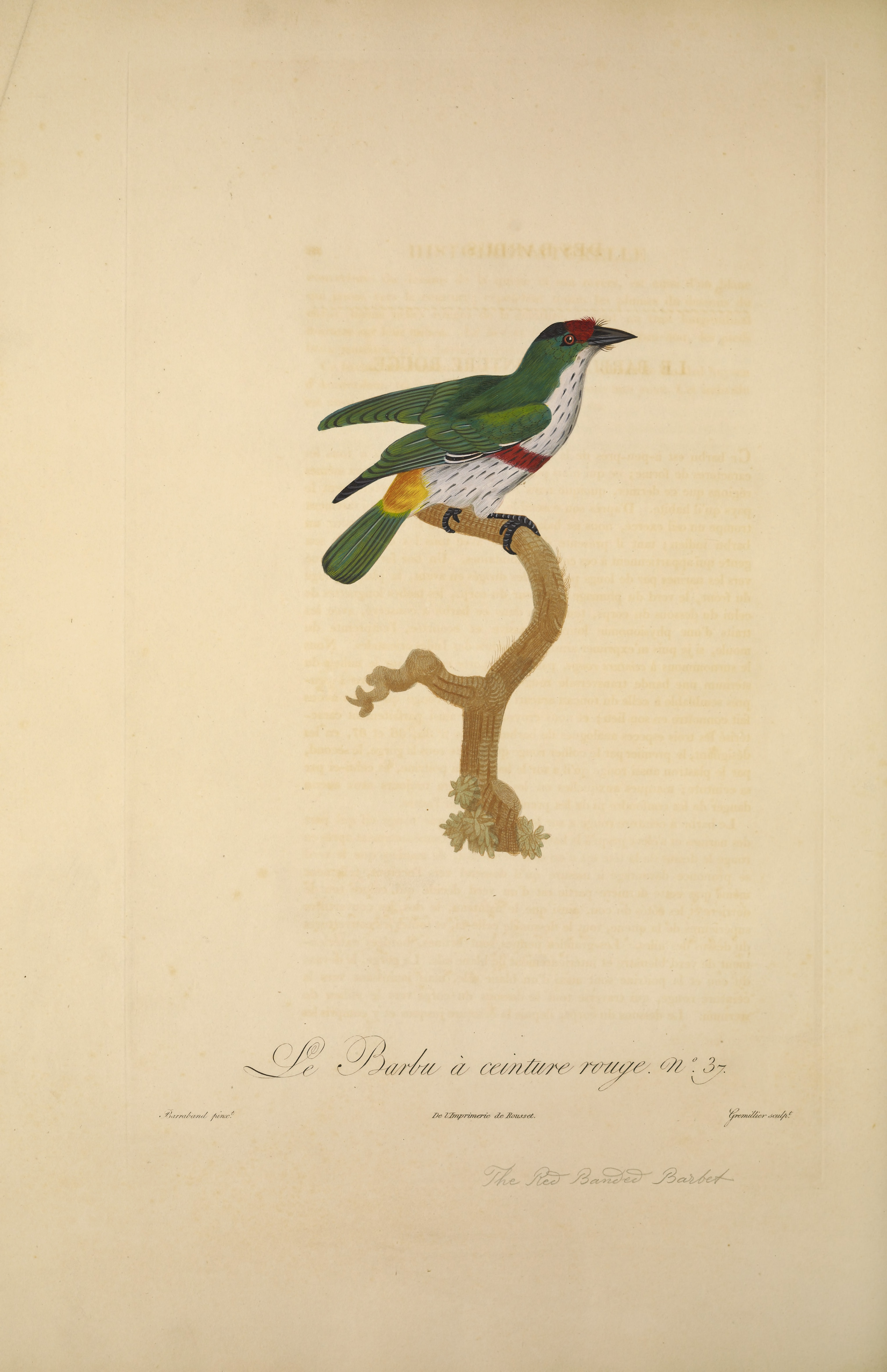 In this masterwork, Le Vaillant focuses on some of the most visually striking species: the ethereal birds of paradise, the vibrant rollers, and toucans and barbets known for their bold colours and distinctive patterns.