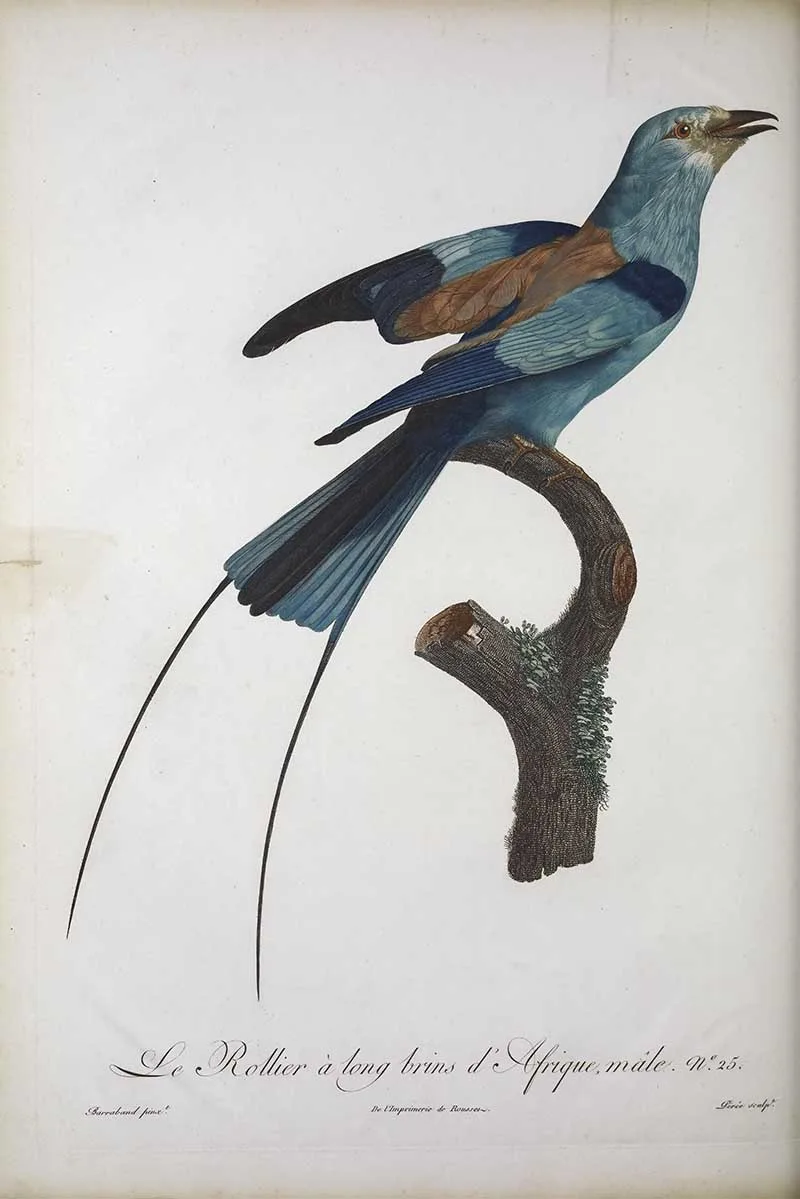 François Le Vaillant was a trailblazer in ornithology. He was well known for his innovative use of coloured illustrations to depict birds in his scientific works. Le Vaillant used a method of preparing bird specimens in lifelike poses using arsenic soap to preserve them. This allowed his illustrators to create realistic and dynamic portrayals of these animals in their natural settings.