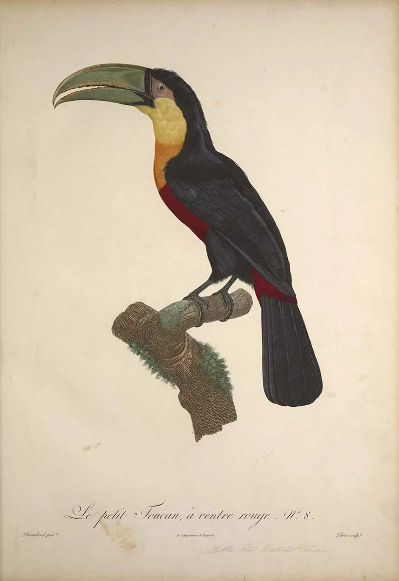 The illustrations from Le Vaillant’s book are a valuable addition to our diverse collection of tropical and exotic bird prints, which already include detailed depictions of toucans, parrots, and cockatoos.