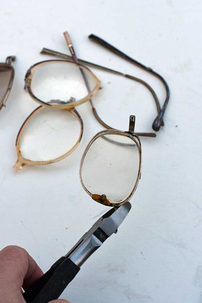 Step 1: Using a pair of wire cutters, take apart the eyeglasses. You want just one lens for each eyeglasses. So, you will be able to make two eyeglasses ornaments from one pair of spectacles.