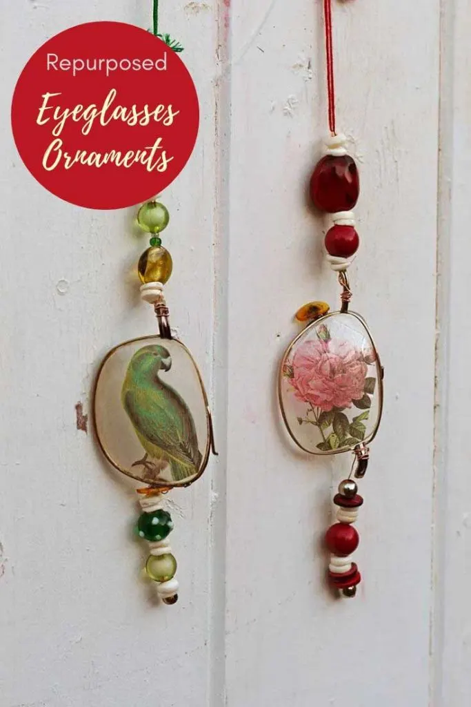 Turn old glasses into unique eyeglasses ornaments with vintage images, beads, and wire. A fun upcycled Christmas craft full of nostalgic charm and holiday creativity!