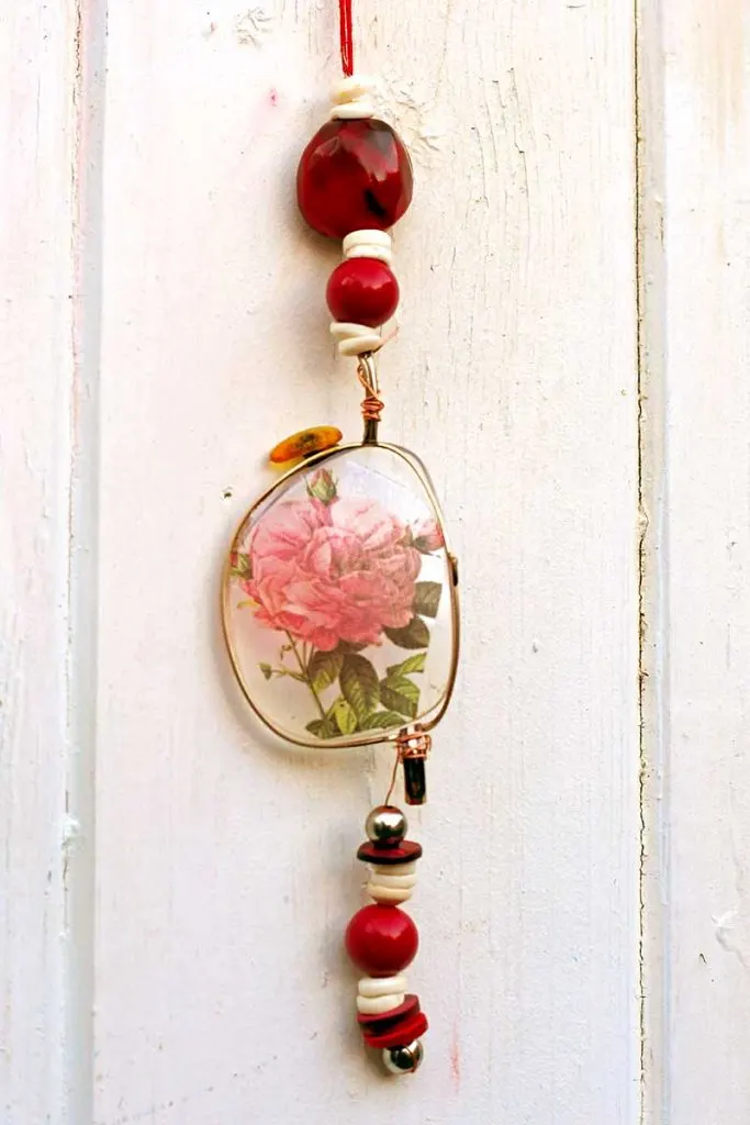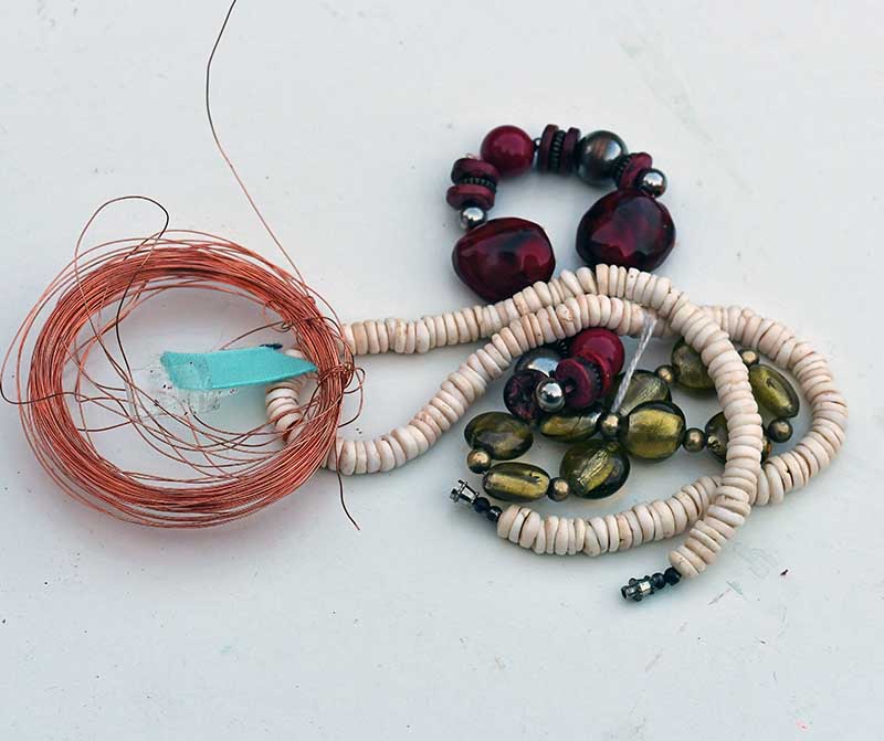 - Beads in festive colours of red, green and white. Old necklaces are an affordable way to find old beads.